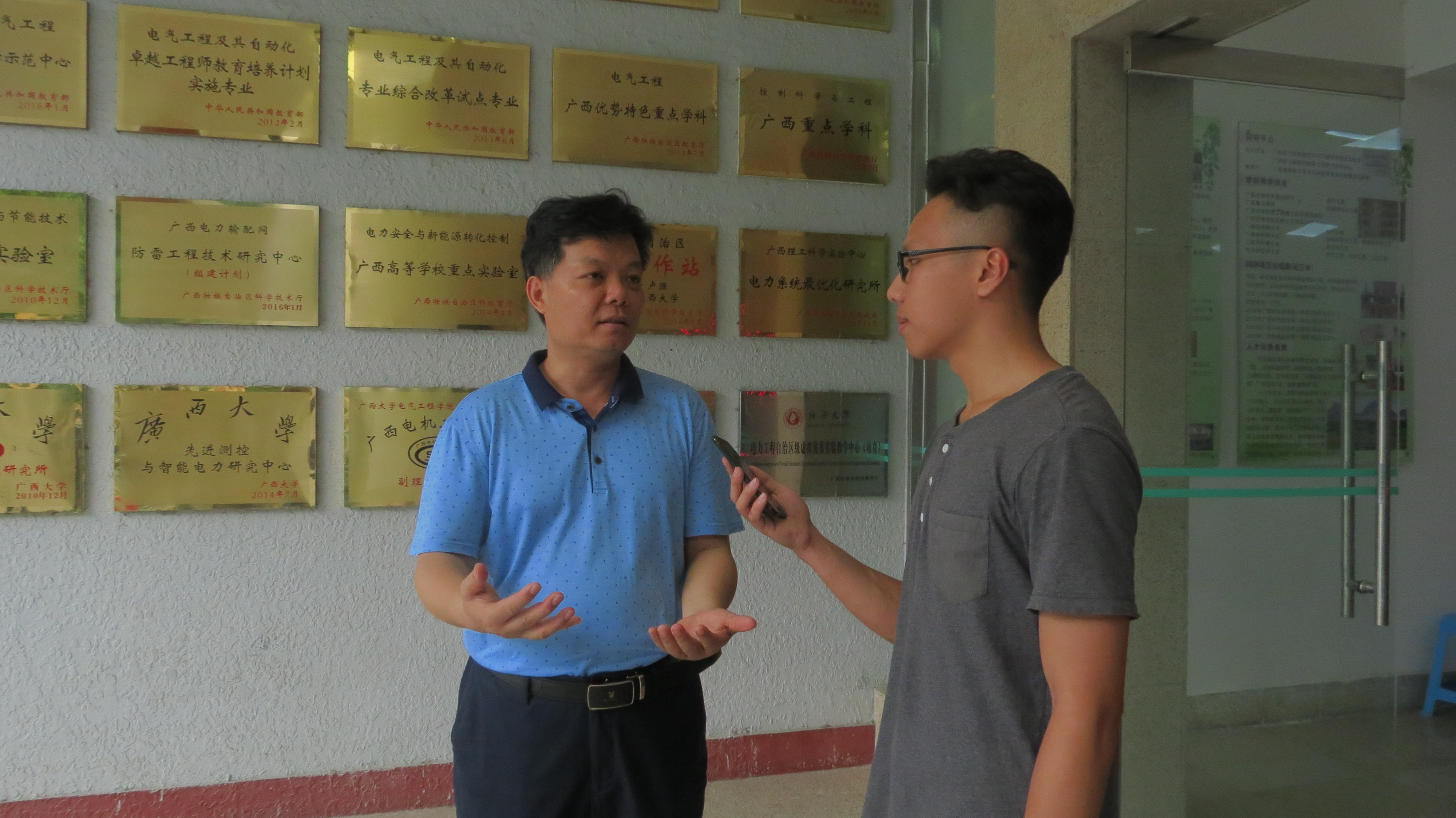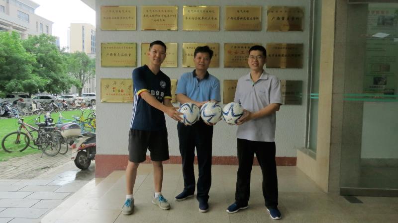 2018“万邕杯”电气校友足球联赛正在紧锣密鼓的筹备当中。5月7日下午,我院99级校友、广西云图体育工程有限公司总经理陈林为比赛捐赠器材,电气工程学院梁志坚副院长代表组委会接受捐。
