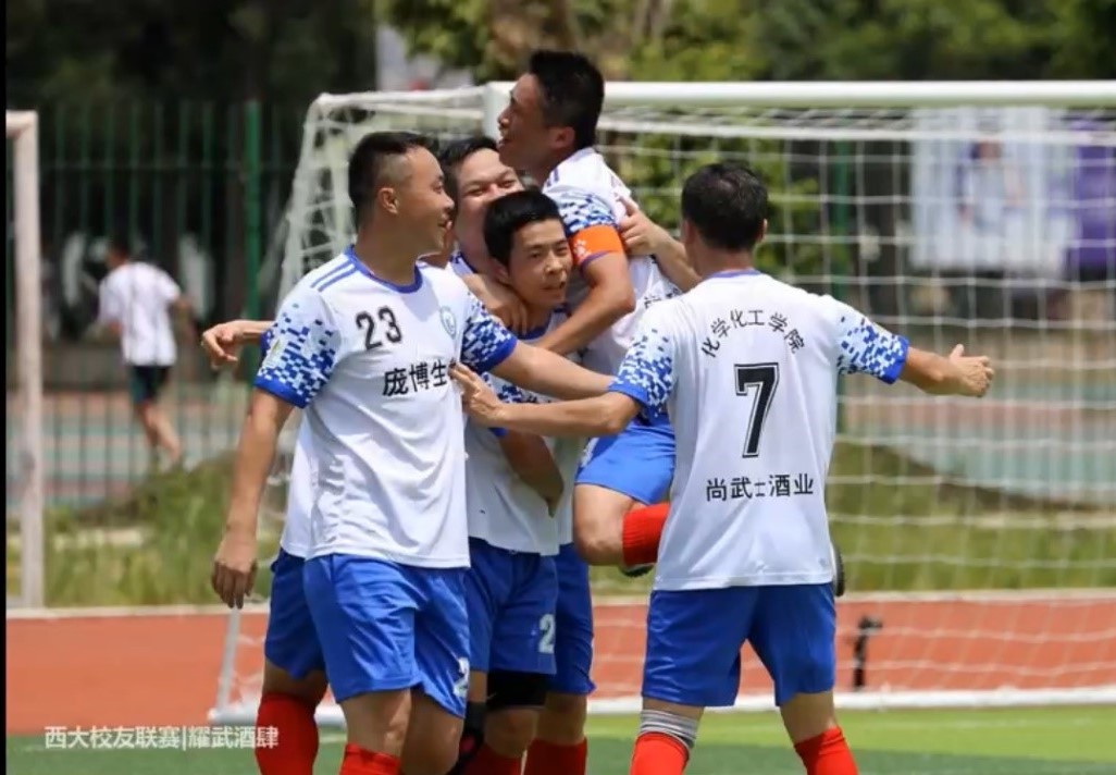 6 月29日早,2019西大校友足球联赛揭幕战在化院尚武士VS动科犇牛之间展开。最终化院队2:1小胜动科队,取得联赛的首场胜利,暂时以3分领跑35+ 年龄组 积分榜首。
