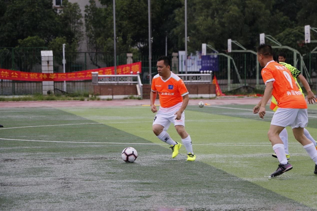 随着裁判一声令下,比赛正式开始。上半场双方都展开了攻势,但由于两队实力相当,不分伯仲,场面一度十分焦灼。而比赛进行到一半,天公不作美,下起了倾盆大雨,以至于比赛暂停。经过了40分钟,雨变小了,足球队员们开始继续进行比赛。这场大雨给这场足球比赛增添了难度,但是却不能打消队员们的热情。在下半场开始后的五分钟,数信新闻队9号队员谢锋打破了僵局,射进一球。外语学院队在落后1个球的情况下积极发起进攻,但是数信新闻队防守得很严密,外语学院队没能进球。最终数信新闻联以1:0的成绩战胜了外语学院队。