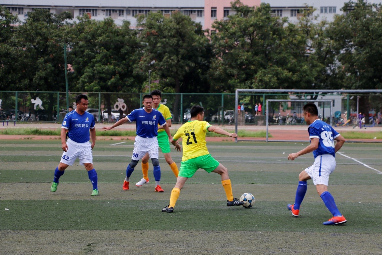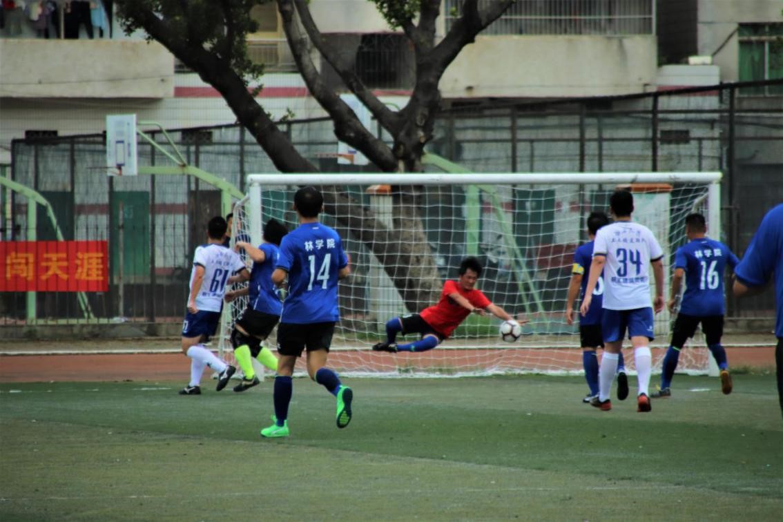 6 月29日,足球联赛开幕式结束后,上午10:00土木狼队与林学星鹰在东赛场4号场地展开首场赛事。裁判哨声一响,双方开始进行猛烈进攻,比赛刚开始不久,凭借队内默契配合和队员积极进攻,林学院星鹰队先拔头筹,拿下第一个进球,土木狼队也不甘示弱,加强进攻和防守,扳回一局。最终两队以1:1的成绩打成平手。