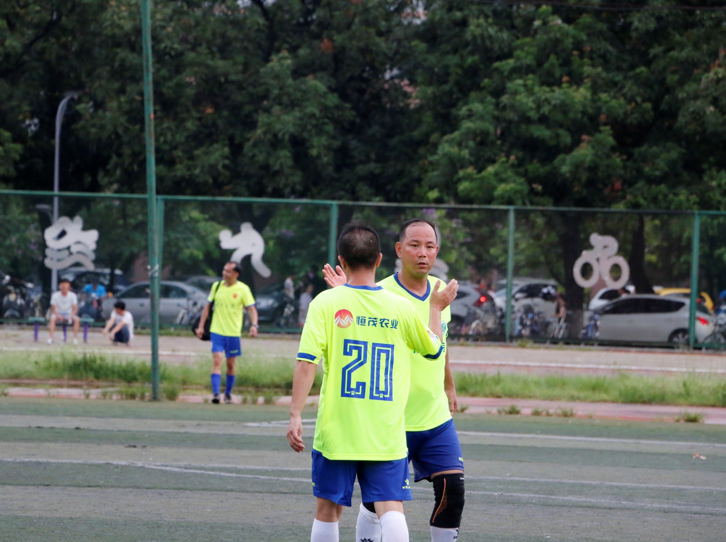 雨过天晴,炎热的天气转清凉,西体育场也迎来了下午的第二场足球赛。春茂电气和土木老狼的对阵赛在西体二号球场打响。不仅两队场上的球员斗志昂扬,场下的替补队员也是热情高涨,不断为自己的队友加油助威。土木老狼在禁区内造成对方犯规,获得了一次点球机会,由土木老狼队8号球员段斌成功拿下点球的一分。下半场比赛中,春茂电气队调整好自身状态,30号球员李慰抓准时机,将球射入网内,追平比分。在比赛最后时刻,李慰乘胜追击再进一球,为春茂电气队夺取了本场比赛的最终胜利。春茂电气队VS土木老狼队的最终比分为2:1。