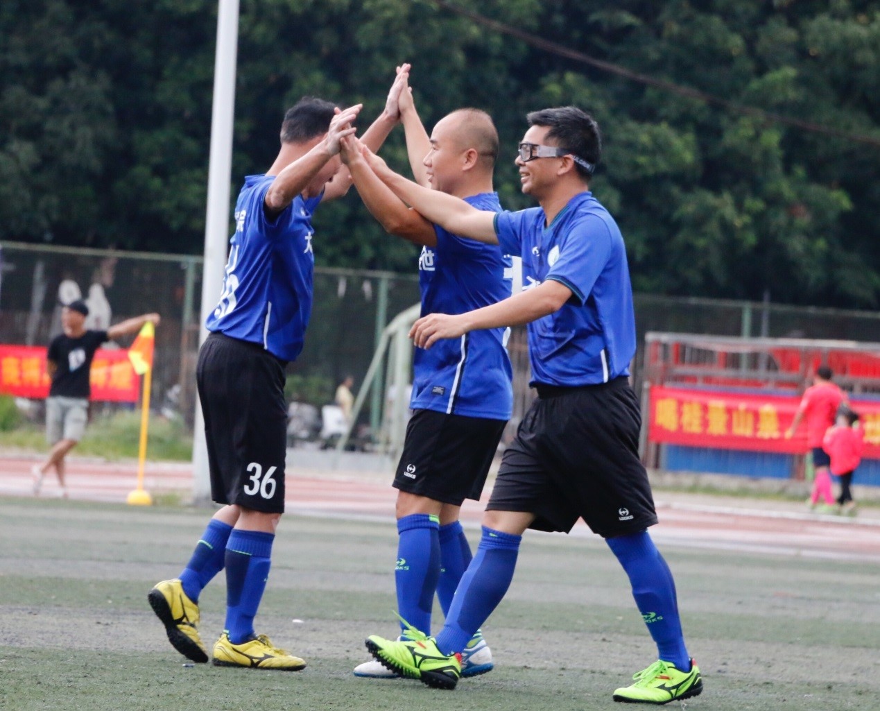 博世科首次派队参加校友联赛,和计电学院的足球赛在西体二号球场正式开始。比赛进行不久,雷雨就突然而至,为保证球员安全,比赛被暂时叫停。小雨淅淅沥沥,却也阻挡不了双方队伍比赛的热情。雨势渐小后,两队克服场地积水的困难,再次开始了比赛。距开赛不到半个小时,计电学院11号球员吕良进拔得头筹,成功进一球,并以有力的防守频频拦截下博世科队的进攻。在下半场的比赛中,计电学院的吕良进一马当先,再进一球拉大比分差距。博世科队也不甘示弱,奋力进攻,最终博世科队19号球员杨秀海踢进一球,结束了比赛。博世科队VS计电学院队最终比分为1:2。