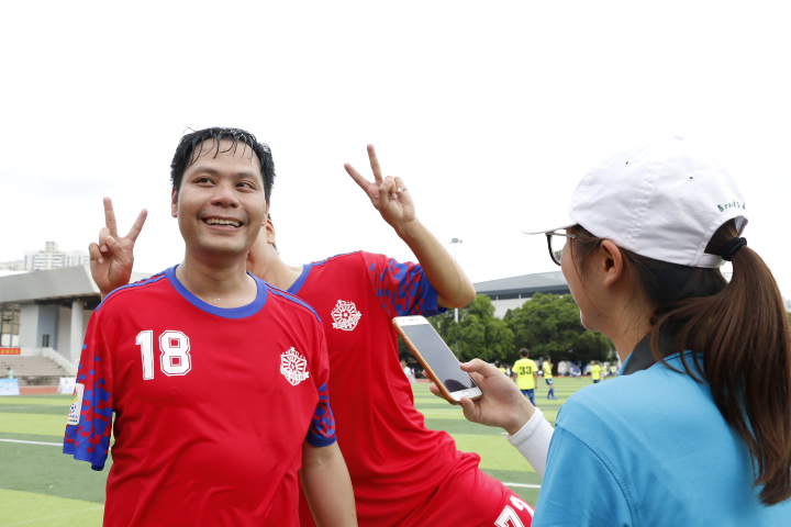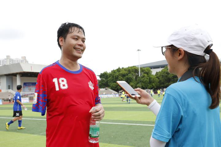 赛后面对记者的采访,陈翔露出了十分开朗的笑容,他表示是第一次参加西大校友联赛,当年担任数信学院足球队队长期间比赛成绩不佳,但也取得过冠军,同这场联赛对手一样,正是因为最终对决商学院的胜利,他笑称这仿佛是“宿命的轮回”。陈翔认为在本场比赛中,数信新闻联的整体实力是不如商学院的,但最关键地一点在于他们恰当的战术布置,赛前他们就坚定地要打防守反击,所以在比赛中防守都是稳抓稳打,没有给对手太多的机会。他还表示其实自己本次发挥一般并没有展现最佳,主要是运气好,才能进得一球,再次回到母校踢球最大的感触就是开心,更重要的是和众多老朋友再次相聚。