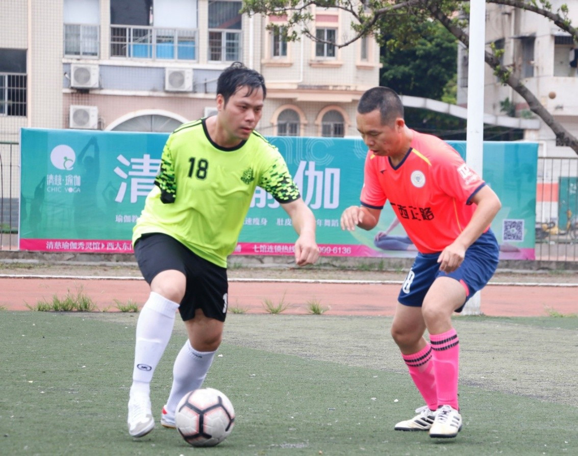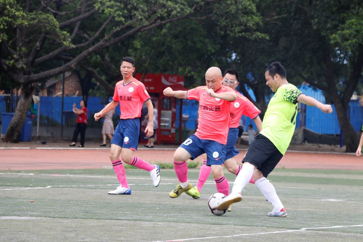 7 月13日上午10时,此前保持全胜的数信新闻队与正路机械队展开交锋。随着裁判的哨声吹响,两队直接进入状态。在激烈的进攻防守中比赛进入僵局,比分维持在 0:0。但数信新闻联队一度利用配合上的优势占据着主动,给对方的后防线频频造成威胁。终于,在开场30分钟后, 数信新闻联队18号陈翔接过传球直接射门得分,场上比分1:0,数信新闻联占据比赛主动地位。下半场易边再战,数信新闻队继续向对手施压,正路机械队积极应对,但双方都错失了几次机会。经过几番鏖战,比分未能被打破,依旧为 1:0。最终 数信新闻联队再获一胜, 卫冕积分榜榜首。