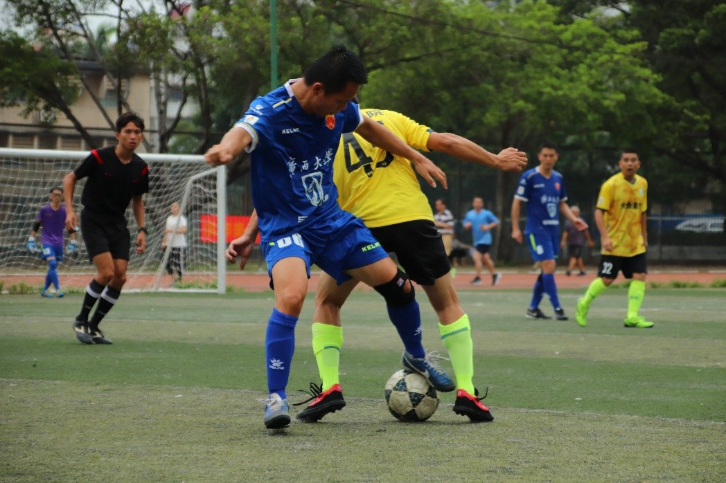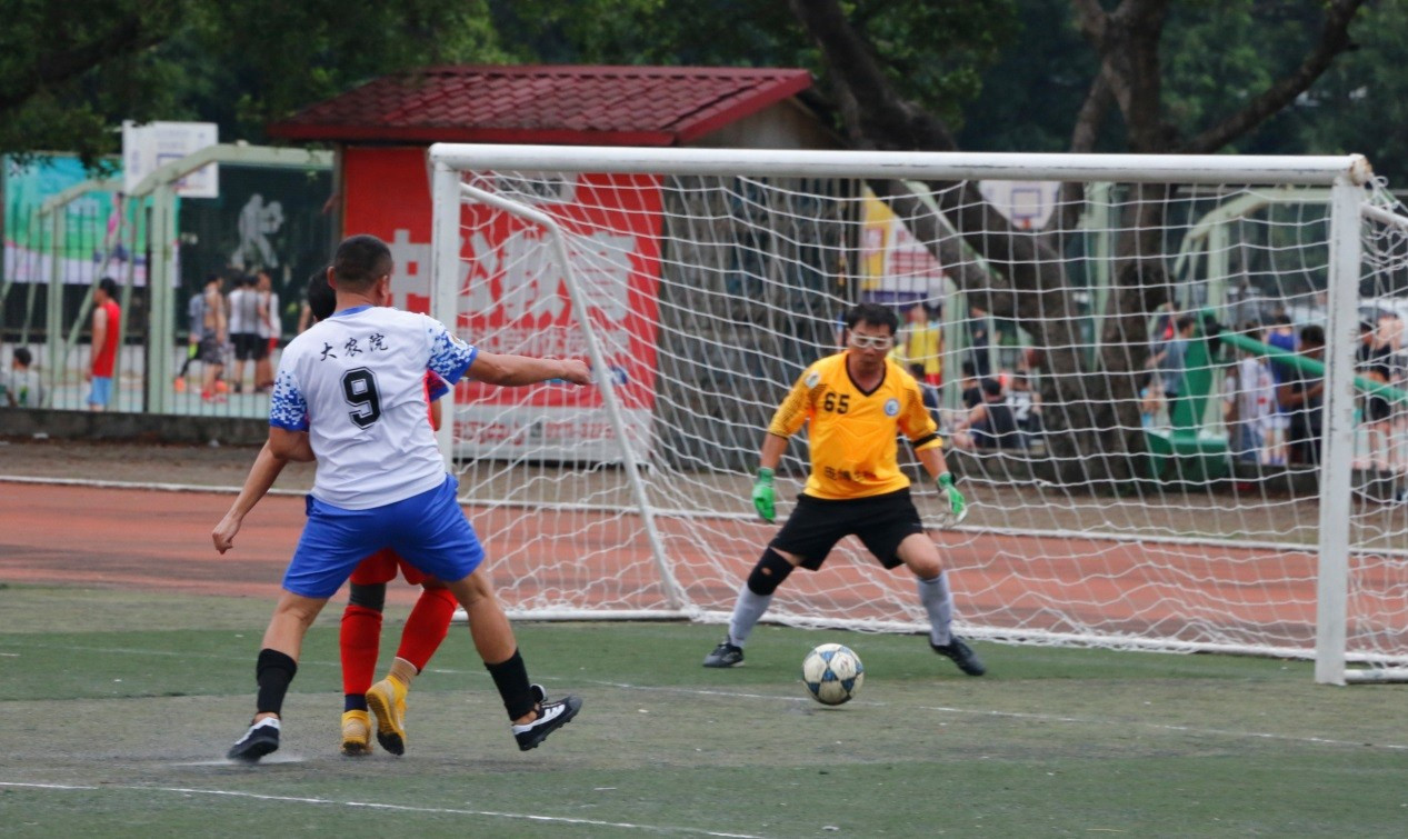 联赛第3轮土木狼与商学院迎来强强对话。开场不到7分钟, 商学院39号曾永安闪击破门,场上比分 1:0;第13分钟, 土木狼57号林绍荣禁区内接到弧顶传球,突入小禁区一脚劲射破门,迅速将比分扳平。中场休息后,下半场开局第44分钟,土木狼首先把握机会, 11号邓毅门前补射扩大比分至 2:1;之后,双方对中场控制的争夺愈发激烈,在商学院的持续进攻下,土木狼的体力有所下降。第54分钟, 商学院77号蒙聪慧在弧顶接到队友妙传,右脚低射贴地入网将比分逼平;第58分钟,商学院右路策动进攻再度撕开土木狼的防线, 蒙聪慧禁区内接到分球,右脚佯射晃过门将打空门得手, 3:2实现反超。下半场最后阶段双方互有攻守但均未改变比分。最终,商学院3-2取胜,全场比赛双方都体现了非常强的实力, 商学院凭借此役胜利以两胜一负积6分, 排名升至第二位。