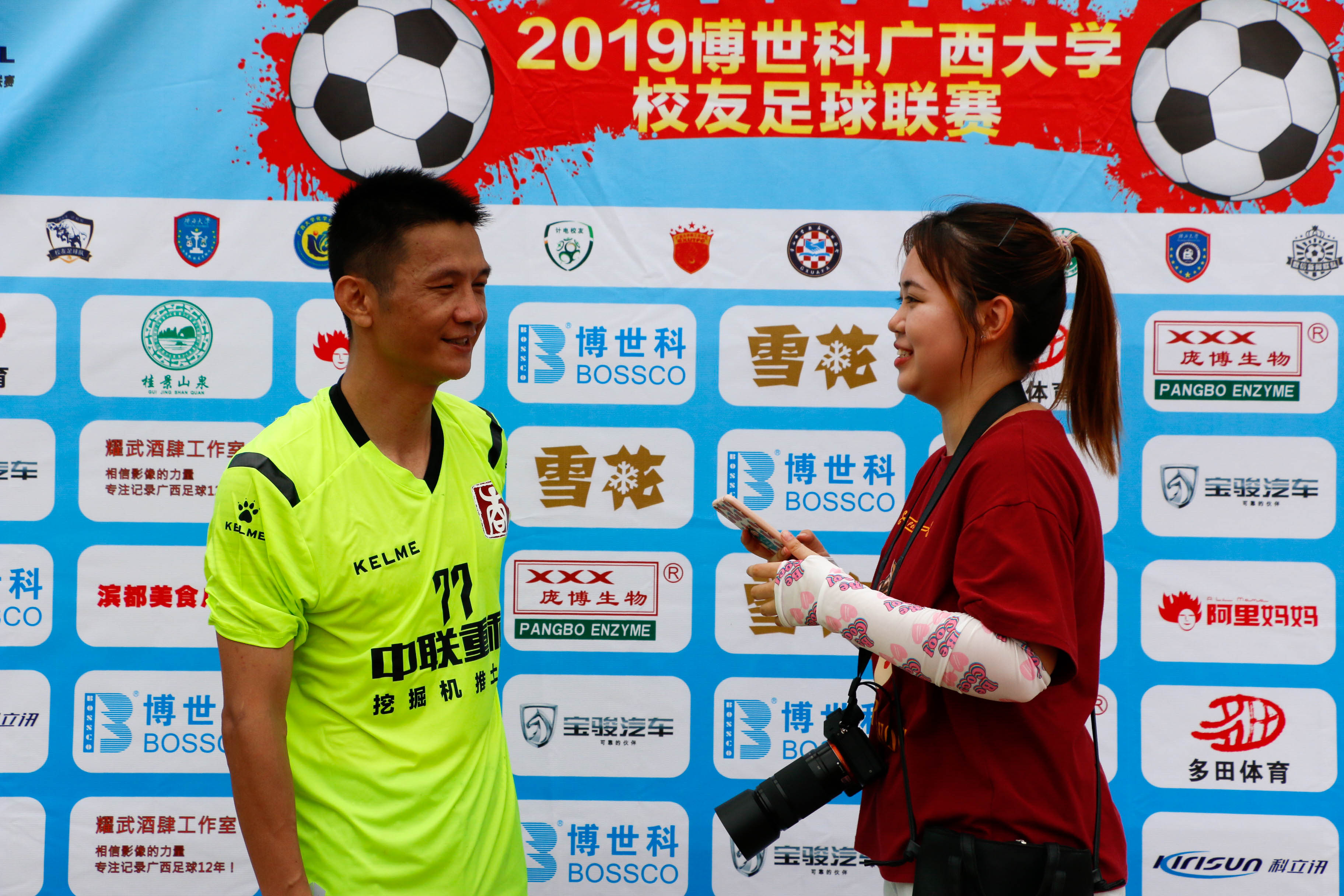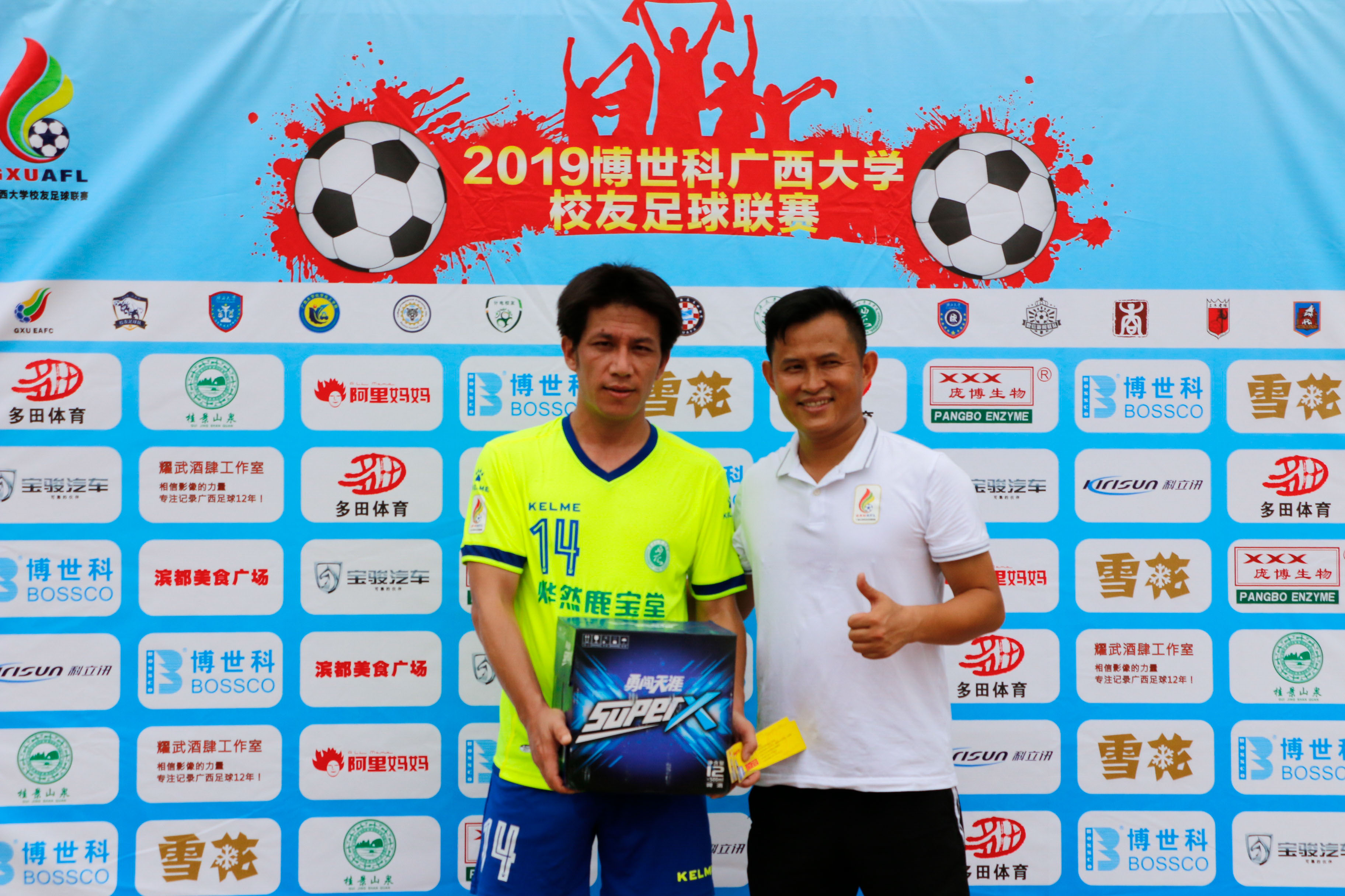 7月13日下午3:30分,动科犇牛与轻工万山的比赛于西校园举行。经过激烈竞争,最终两队以1:1打平。 轻工万山18号门将,多次把对方的球扑去,荣获本场比赛最佳球员。在赛后接受采访时 吴顺国谈到,此次联赛,空前之盛况,点燃了校友的所有热情,无论是参赛还是不参赛,都关注着,非常感谢组委会举办此次比赛。并表示门将作为最佳肯定是对球队的鞭策,快乐足球固然重要,赢下比赛是每个队的终极目标!