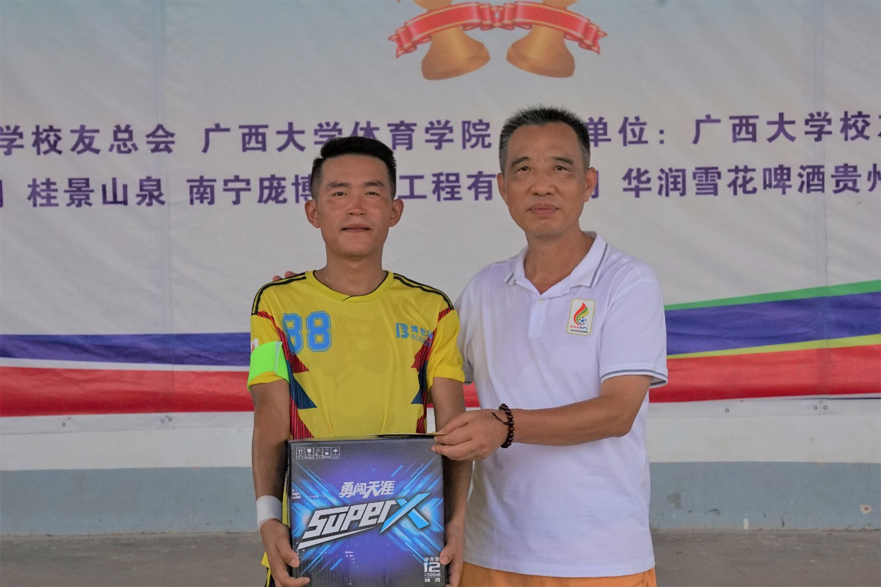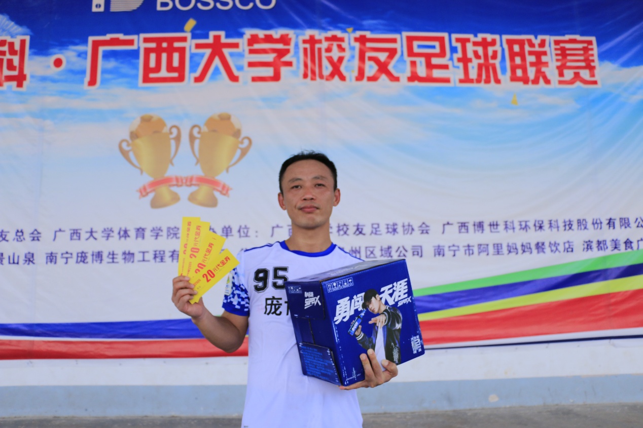 在化院尚武士与农学院的对决中,面对比分0:0许久未能打破的局面, 化院尚武士95号谢华骏 结果传球后不负众望,射球入网得分,拿下比赛第一球,成为本场比赛的最佳球员。