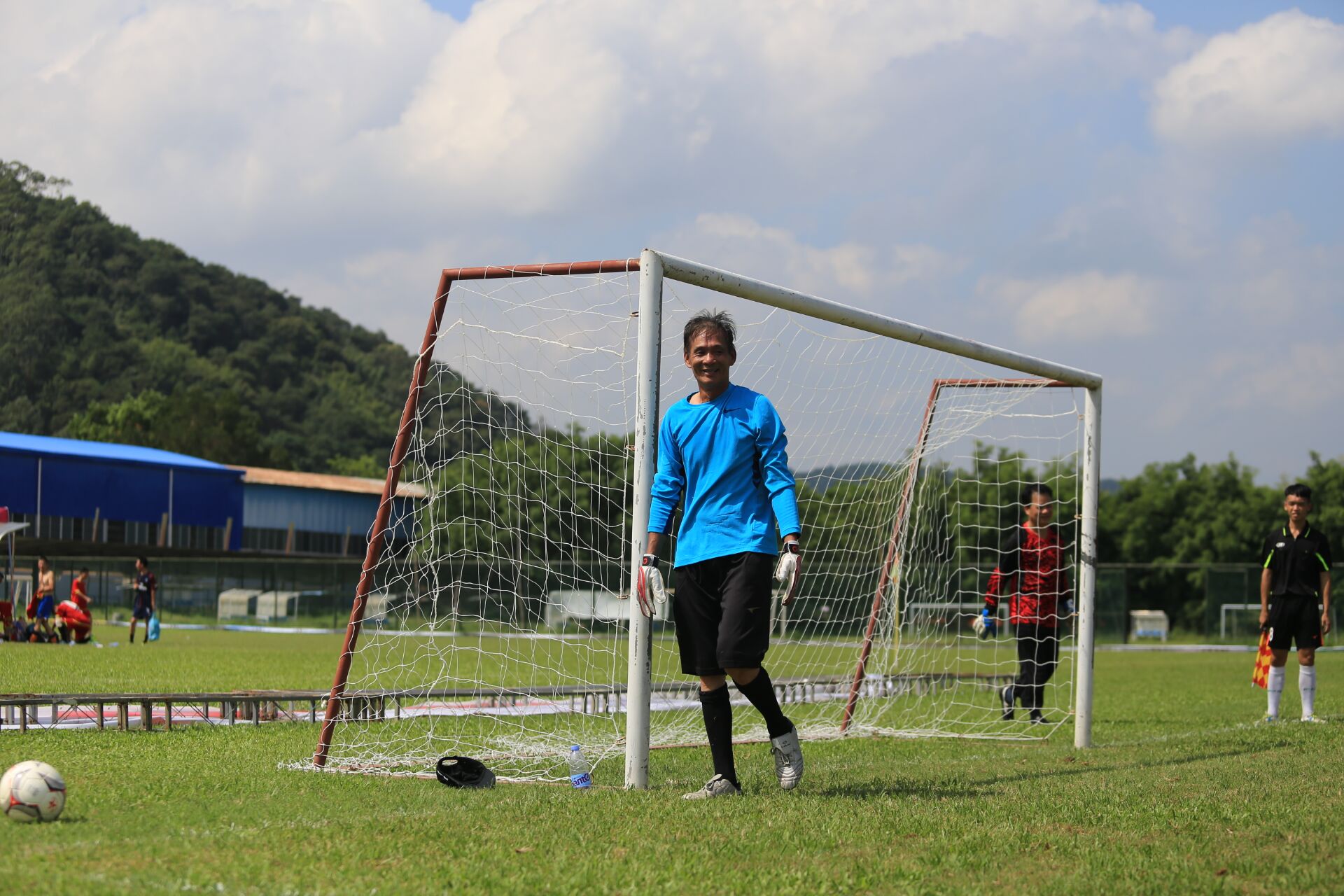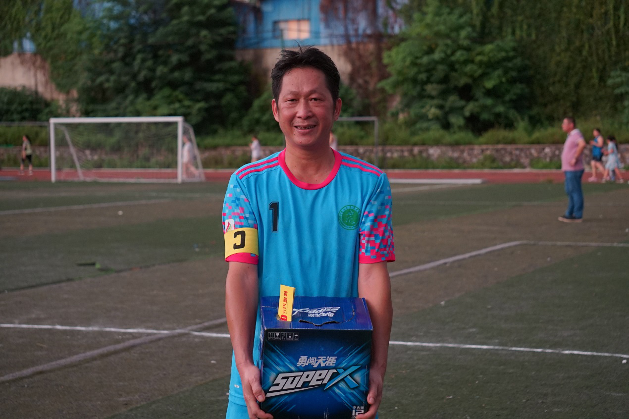 君 武教工和整点联盟的比赛在温度怡人的傍晚进行,两支队伍实力相当,难分伯仲。经过激烈地角逐,双方均未破门得分,比赛以0:0打平。 整点联盟 的主力守门员莫飞 被评为本场比赛的最佳球员。莫飞今年已是63岁的高龄,赛后他表示踢球很快乐,每周都会和队友相聚一起踢球锻炼身体,也加强了队友间的默契与凝聚力。他们球队以球结缘,大家就像兄弟姐妹一样亲。他还说到,踢球并不为了成绩或是比赛指标,为的是一种荣誉感、一种精神。