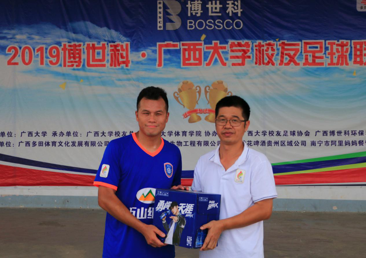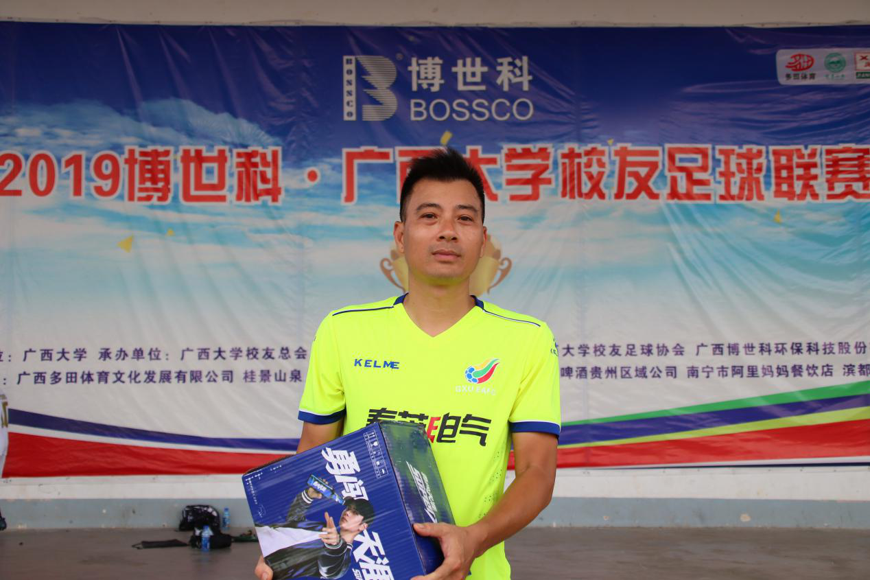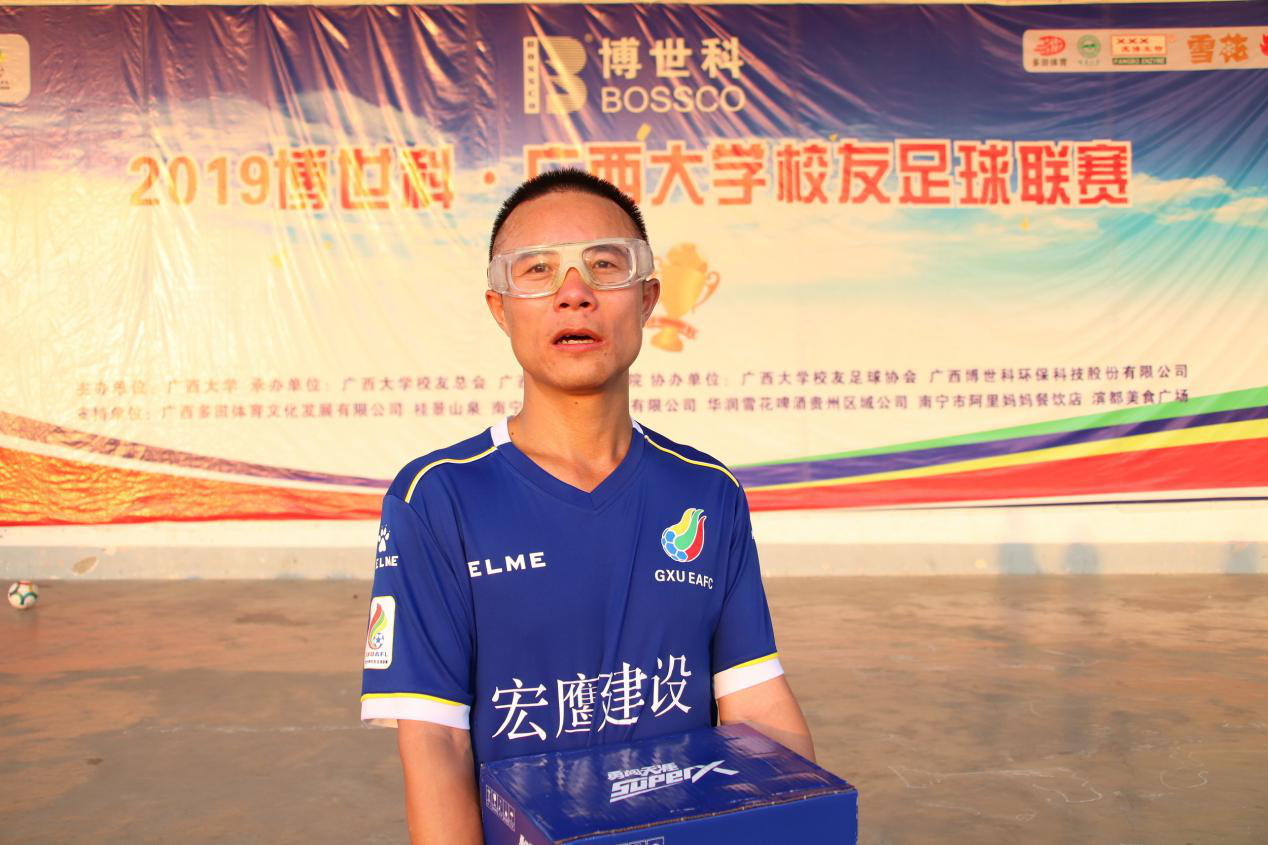 在君武教工对阵化院庞博的比赛中, 化院庞博门将杨洪波 多次飞身封堵解围,拦截下对方猛烈的进攻射门,展现了良好的守门实力,当之无愧成为本场比赛的最佳球员。杨洪波在赛后采访中表示这是自己回归后的第一场比赛,在知道西大举办这次足球联赛后就主动联系参加,他还回忆起自己作为守门员的队伍曾经在南宁高校联赛中夺得冠军,也是为广西大学争了一次光,他还表达到以联赛汇聚四海八方的校友,可以增强西大的凝聚力,同时也希望西大校友联赛能够越办越好。