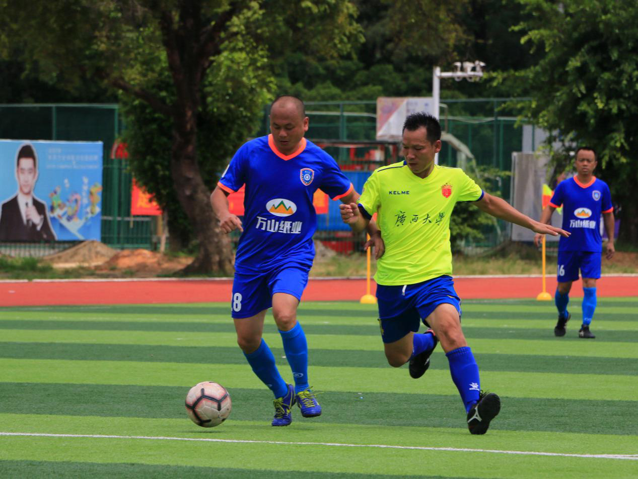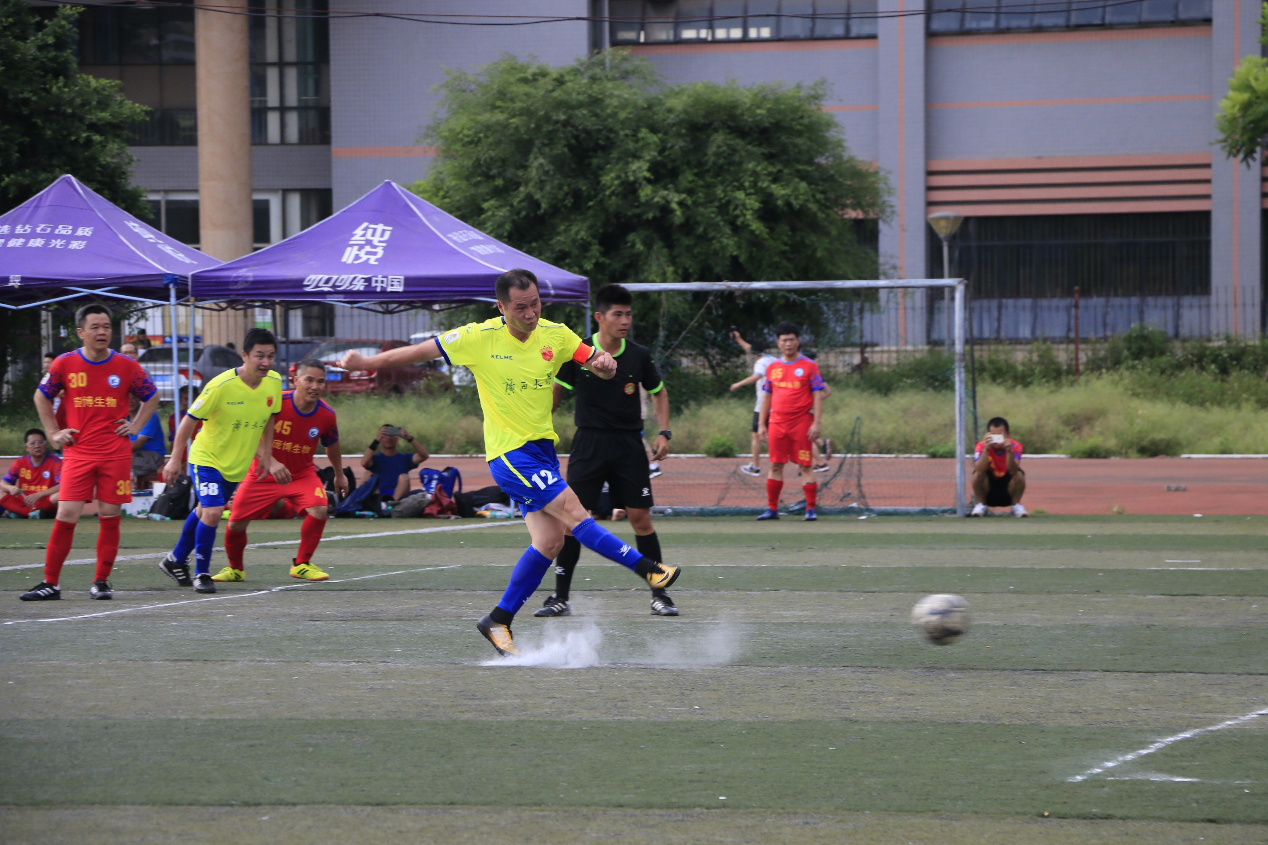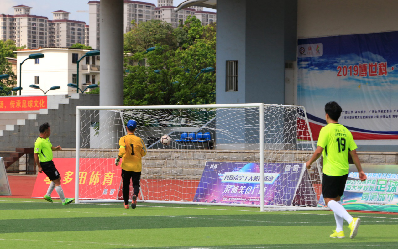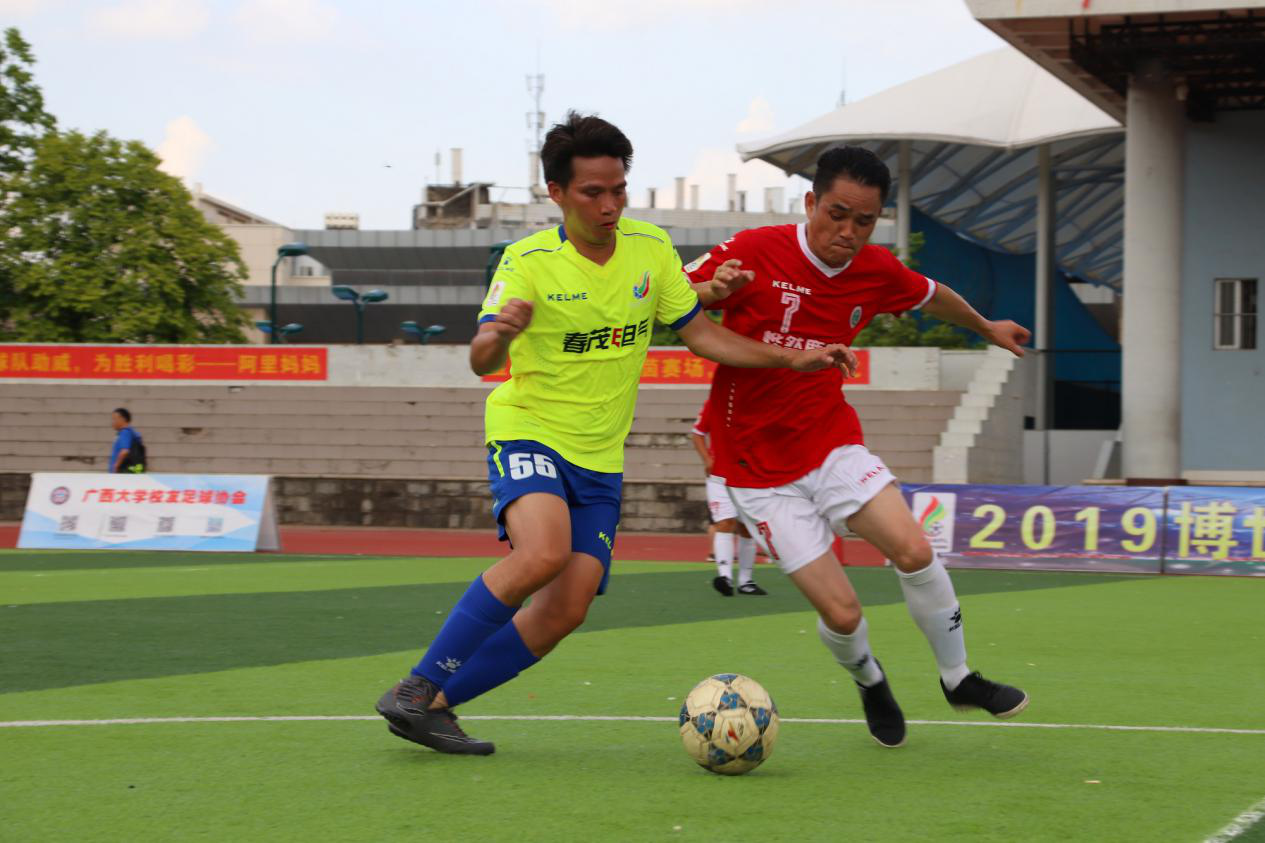 7月27日上午10:00,2019博世科广西大学校友足球联赛又迎来新一轮比拼,商学院队与林学院星鹰队的比赛在西校园2号场地拉开序幕。