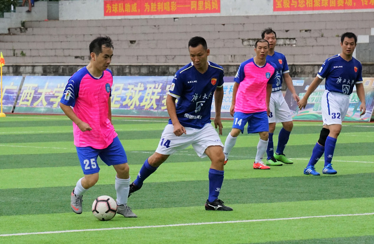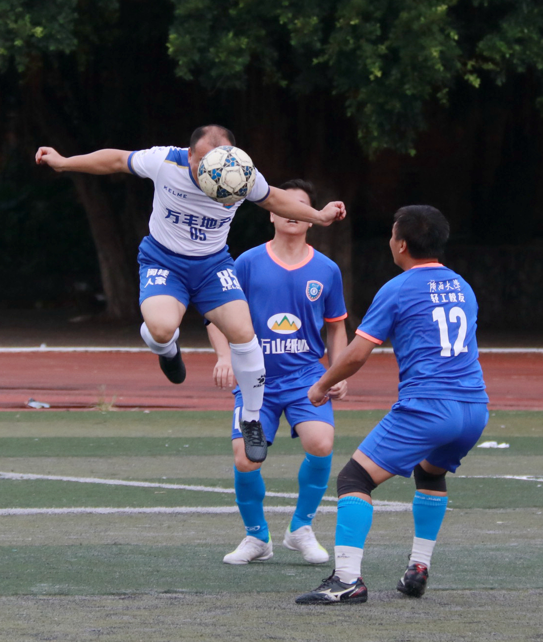 比赛时阵雨频频,但这并没有浇灭球员们的激情。第51 分钟, 法学院何勇航、韦海东,教工宝骏岑人军染黄 。第53 分钟, 教工宝骏21 号余云宇 开出角球, 3 号韦良 力压对方后卫和门将,近距离头锤入网,教工宝骏2-0 拉开差距。第 68 分钟,法学院大举压上导致后防空虚,教工宝骏顺势组织长传反击,前场形成二打一, 28 号孙翔 在禁区内面对门将推射小门得分, 教工宝骏3-0 锁定胜局 。