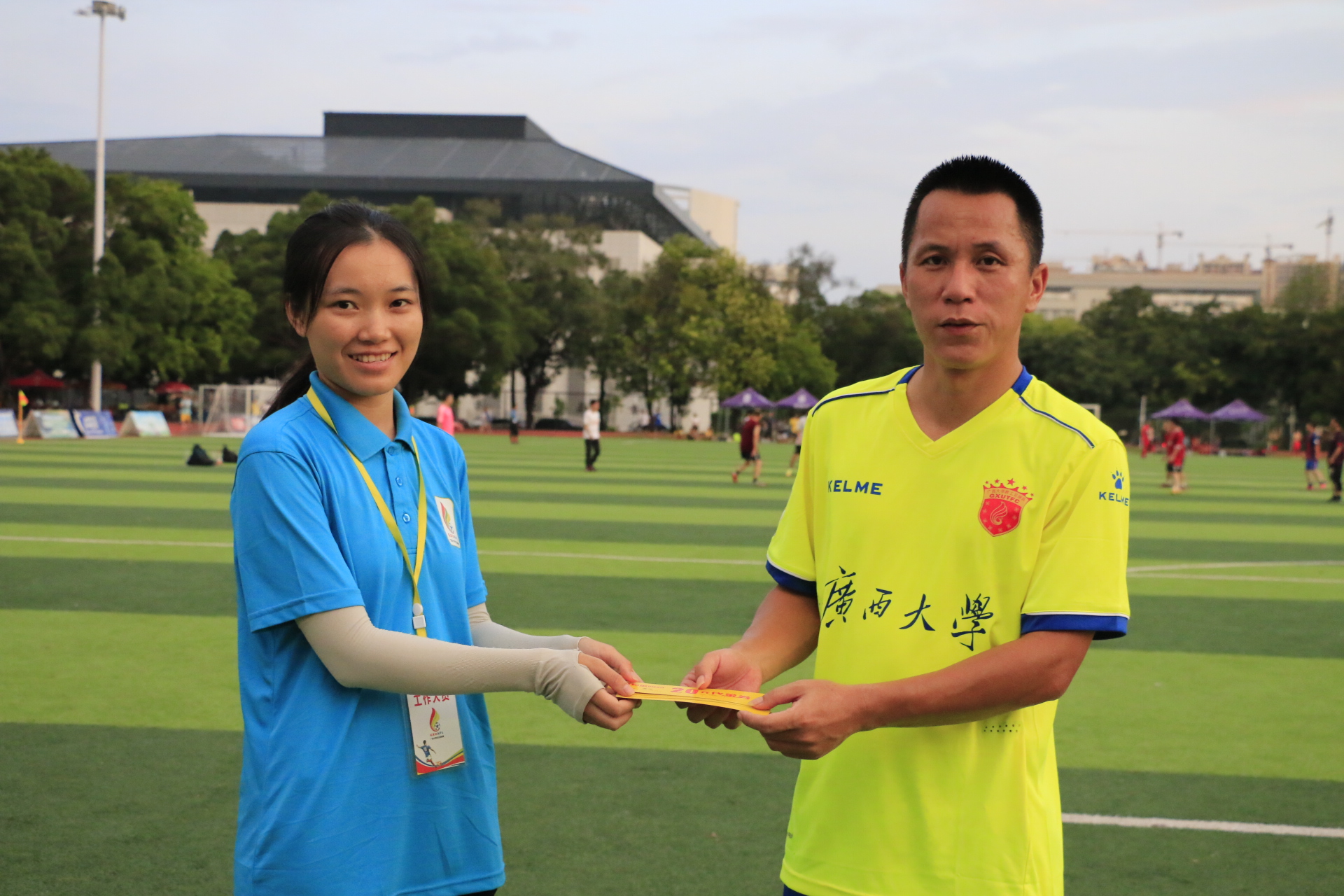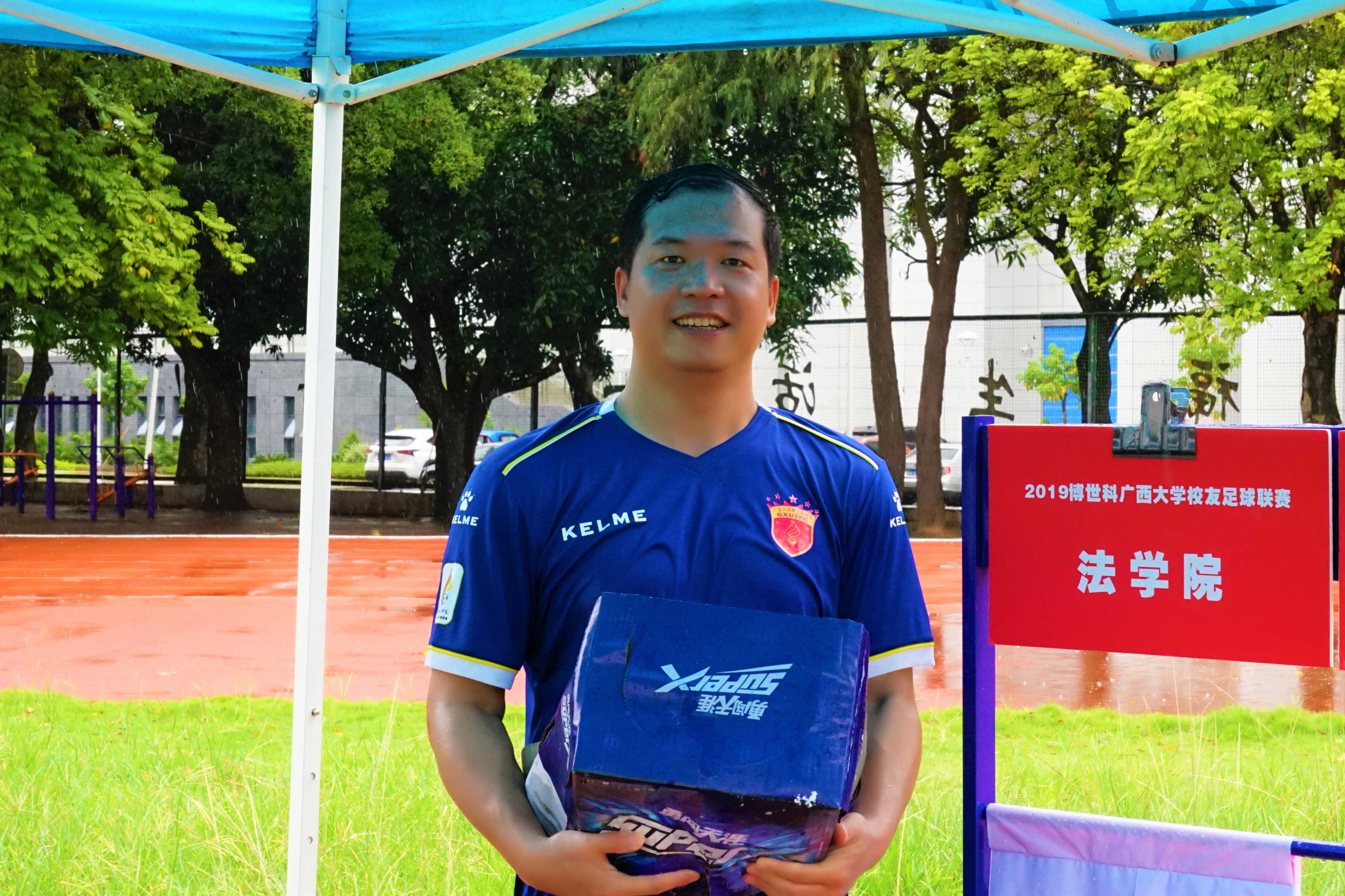 上午10:17,校友足球联赛第八轮法学院主场对阵教工宝骏。最终, 教工宝骏客场3-0大胜法学院, 3号韦良 也凭借场上的精彩表现被评为最佳球员。在比赛开始前,四支参赛球队共同在西校园举行了唱国歌仪式,以此表达对香港政府和警察的支持。在接受采访时,韦良也同样表达对近日香港暴力事件的反对。谈到本场比赛的表现,他说比赛的第一枚进球让队员们信心大增,全队在控球上的配合也是本场比赛致胜的关键。