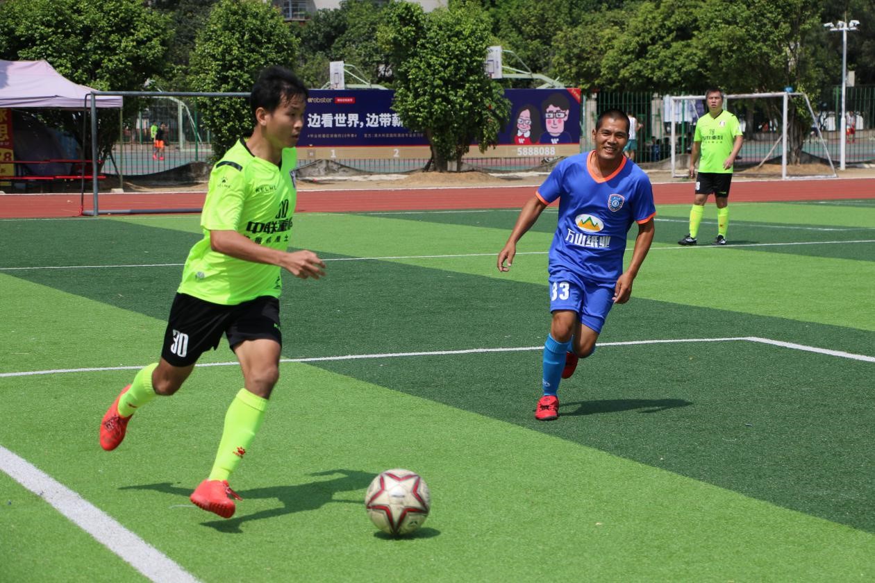 易边再战,下半场双方都加大进攻力度。第44分钟,动科犇牛17号梁庆勇侧面直射做球,44号何忠广门前错失。随后,动科犇牛92号黎锡友、外国语学院12号陆国富因动作失范相继吃下一张黄牌。第74分钟,外国语学院成功反超, 10号邓小桂趁守门员冲出守球之际,接球直射入网,外国语学院2-1动科犇牛。后动科犇牛追击无果,比赛以外国语学院 2-1动科犇牛小比分获胜。