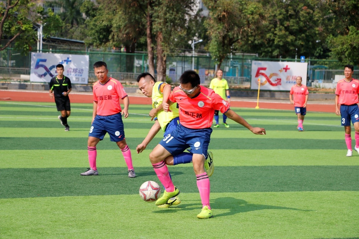 迎着灿烂的阳光,电气宏鹰队与正路机械队的对决在西体2号场展开了。