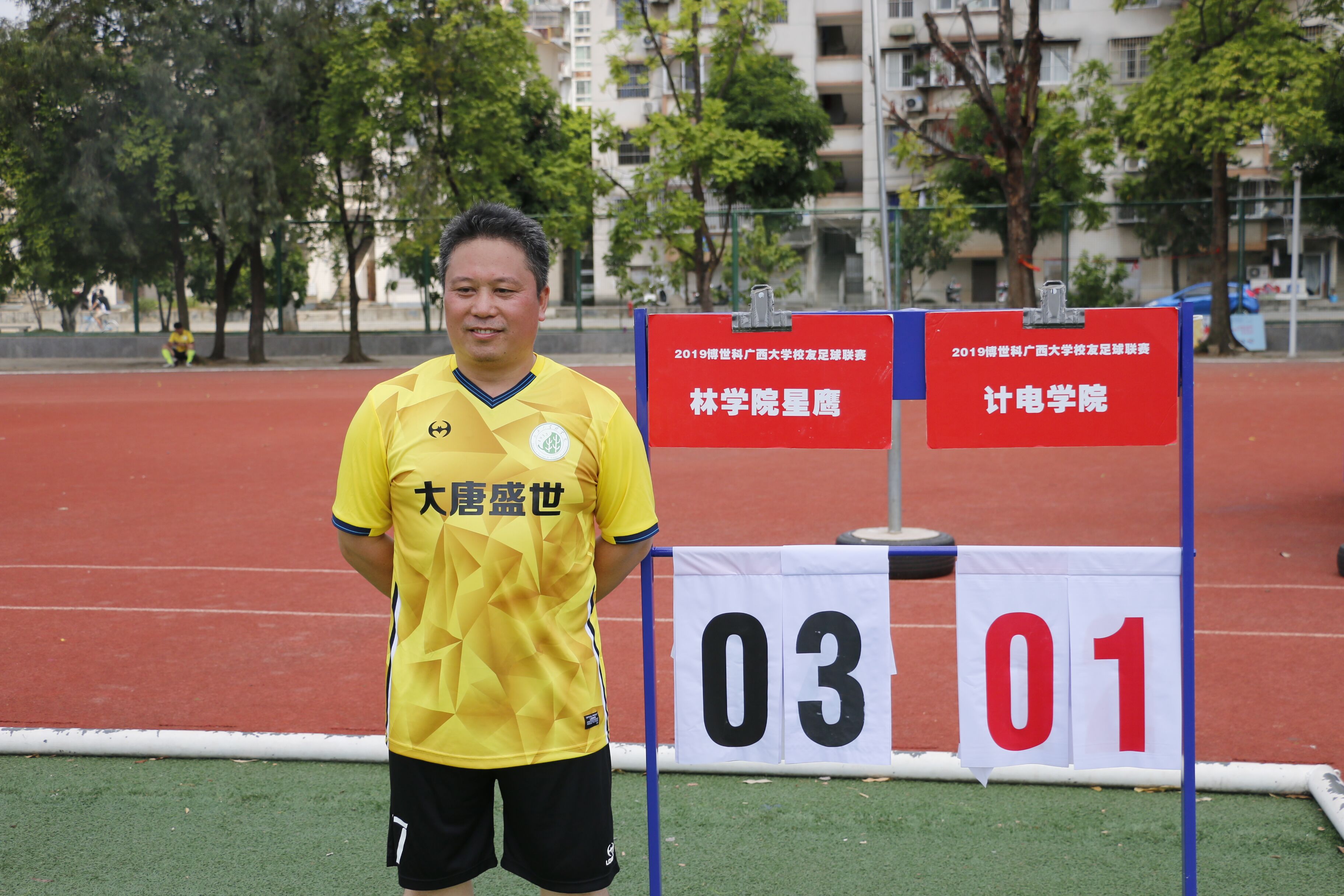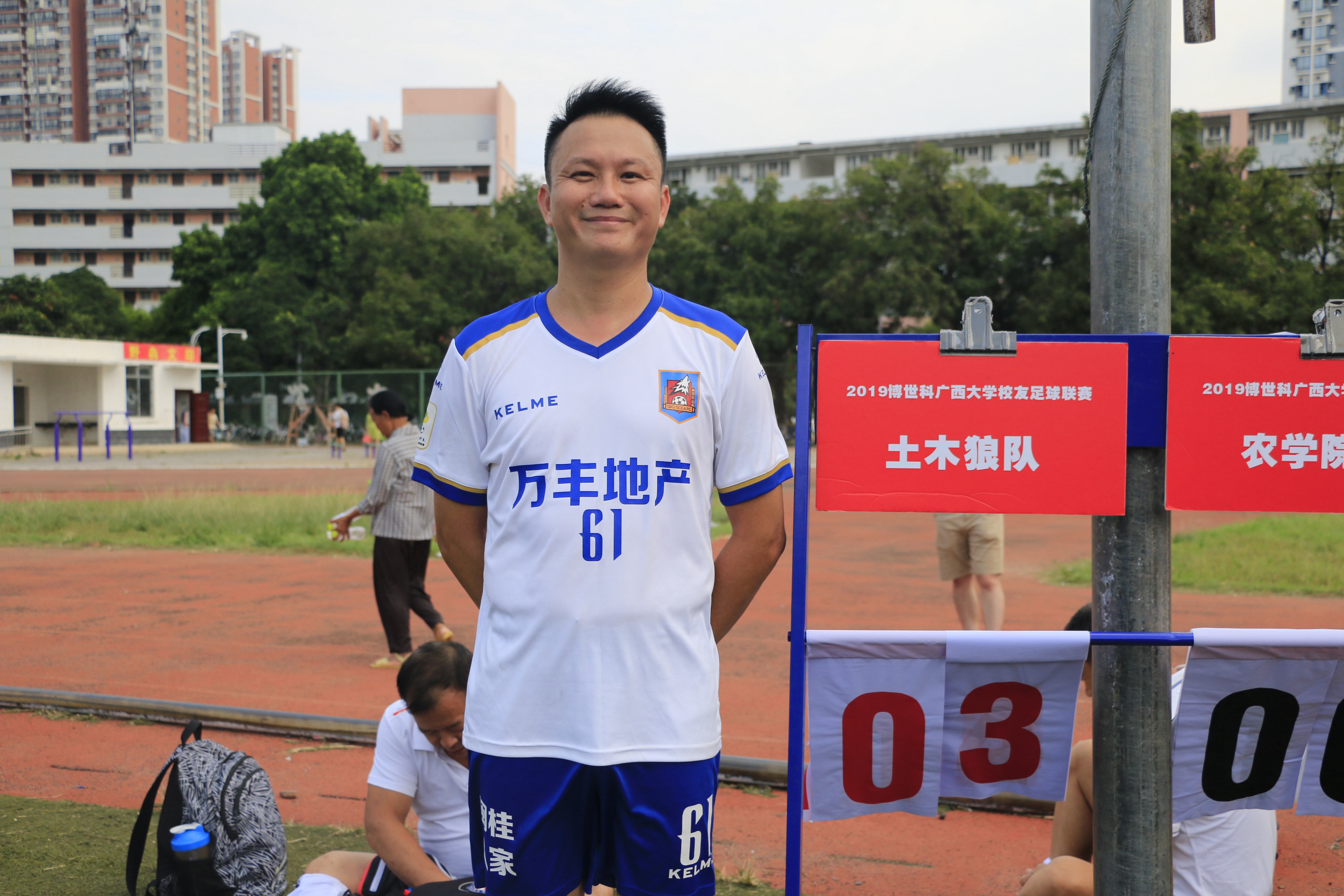 在赛后采访中,他表示能取得本场比赛的胜利很开心,同时感谢队友们的共同努力。最近几场比赛他们由于人员不整导致结果不尽如人意,上一场对阵农学院又刚刚大比分失利,急需赢球来恢复队伍的信心和士气。他们本次比赛还剩两场球,对手是林学院和土木学院这样的强队,希望队友们能尽量克服困难到场参赛。这场比赛由于他们缺了两个主力中场,所以他的位置虽然是边后卫,但更多的精力还是投入到进攻中去,而且中前场的队友都是10多年前一起代表学院打比赛的,默契尚存,所以在比赛中也给队友们创造了不少得分机会。当天由于正值东盟博览会期间,比赛双方到场人员都不多,他们刚够人开场,而对手少一人。开场阶段他们打得急躁一些,错失了几个进球机会,在补水时间及时做了调整,之后很快就取得进球,半场结束领先3球。下半场他们的得分机会也很多,但都操之过急未能把握,反而被对手反击进了两球。