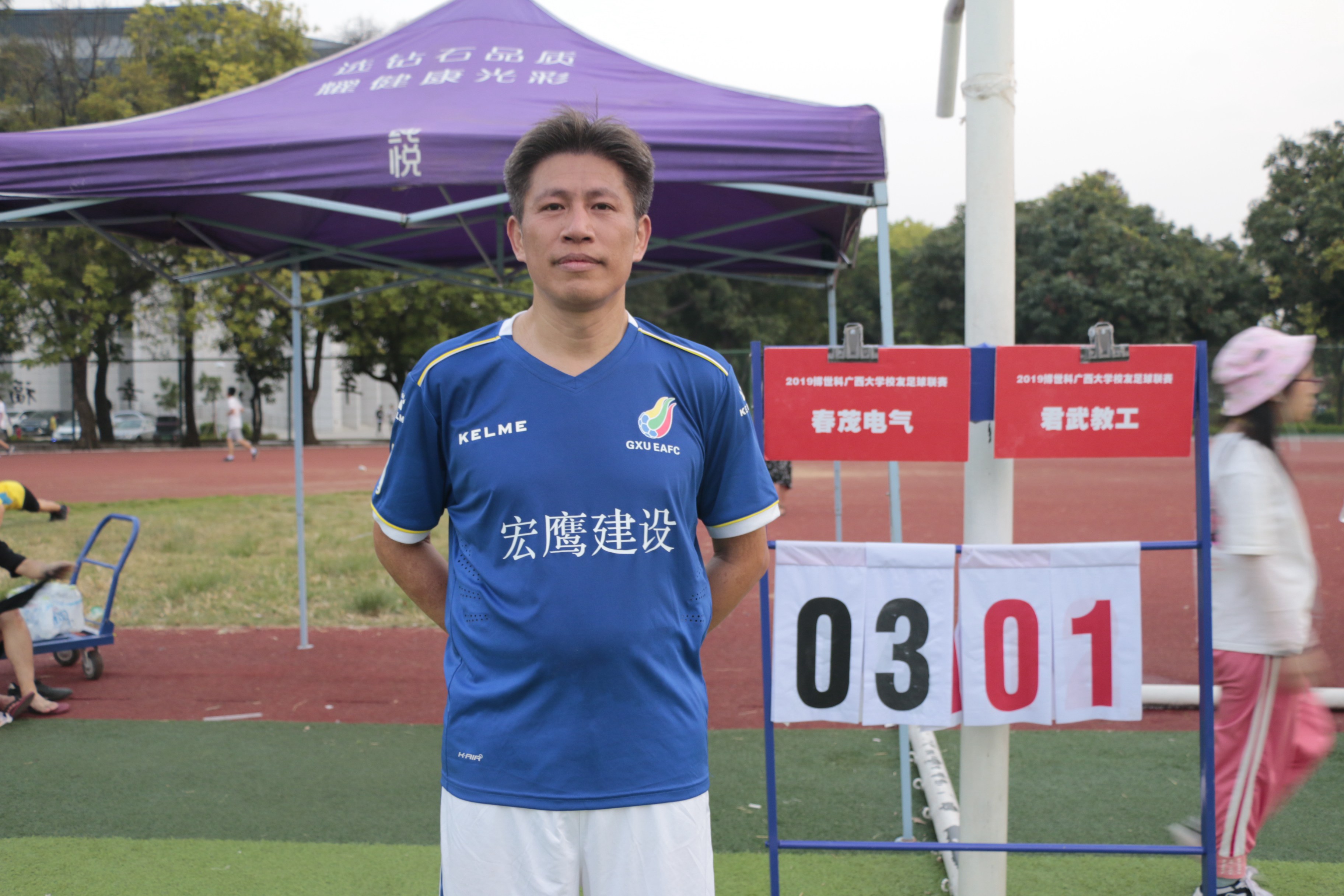 君武教工在1号场地迎战春茂电气。电气33号刘杰门球头锤摆渡和远距离大脚射门帮助电气学院在场上拿下两枚进球,最终君武教工1-3不敌春茂电气,刘杰被评为本场最佳球员。由于遇上国庆调休,结束完球赛的第二天就是一个工作日,不少球队们都在赛前提前做好了时间安排。刘杰向我们介绍道,在赛前大家都希望能够踢好这场球,所以能够来的队员们都来了。提到对手的表现,刘杰做了肯定的评价,他说,君武教工队的防守很强,也是丢球较少的球队,因此他们也调整了战术最终赢得比赛。