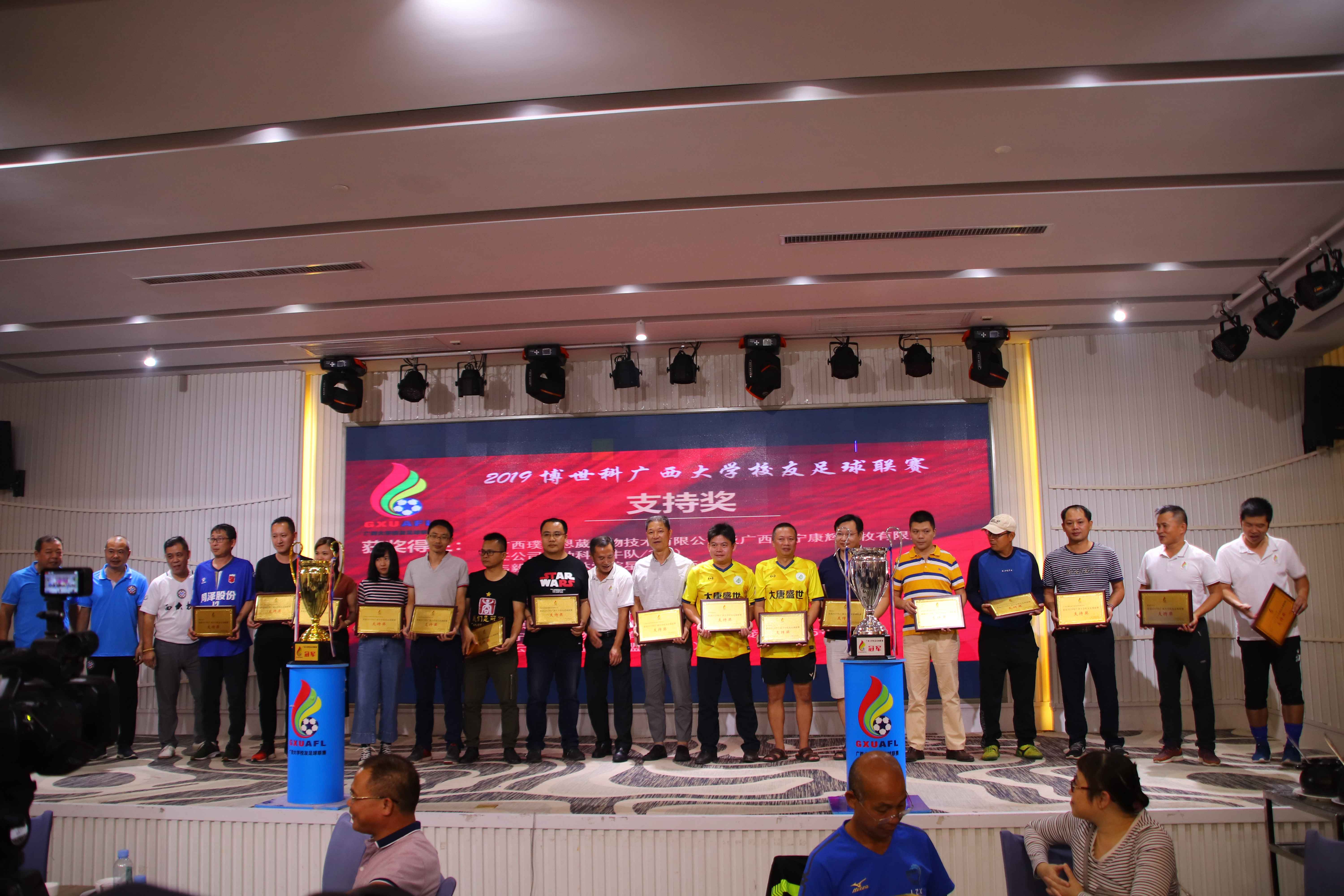 2019 博世科•广西大学校友足球联赛各项奖项10月19日在闭幕式上揭晓,各奖项得主如下: