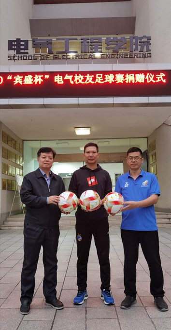 2020年11月24日下午,陈林校友继2018“万邕杯”之后,继续为2020“宾盛杯”校友足球赛送来比赛器材,电气学院党委副书记梁志坚、组委会负责人祝云代表组委会接受了捐赠。梁志坚副书记代表学院对陈林校友的大力支持表示感谢!