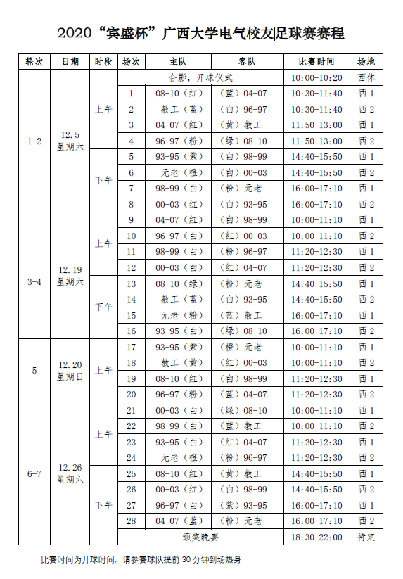 2020 “宾盛杯”电气校友足球赛赛程