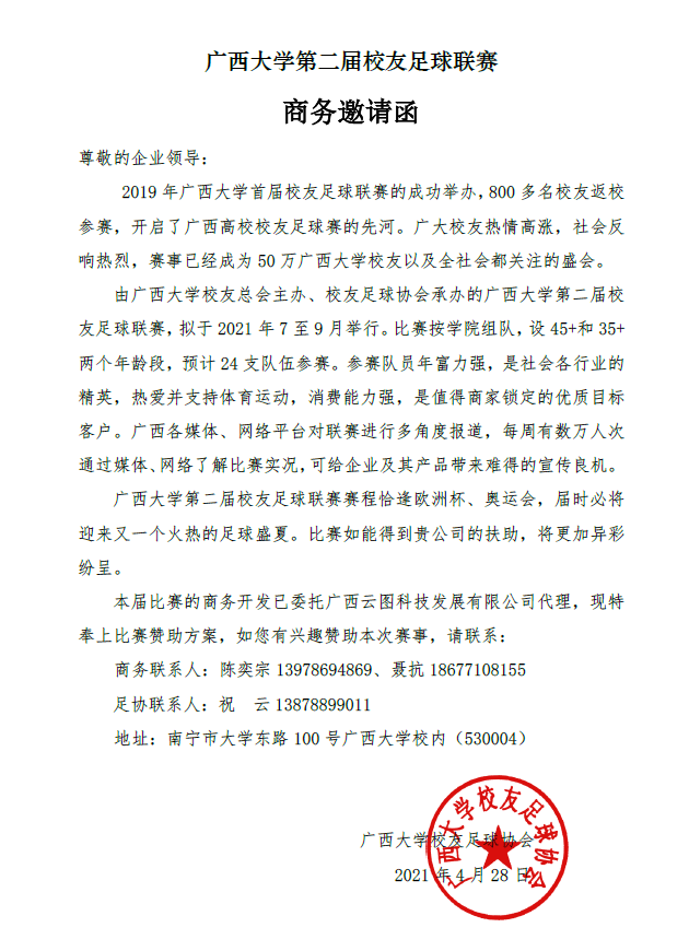 广西大学第二届校友足球联赛商务邀请函