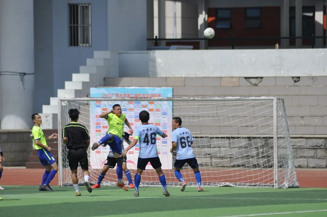 2021年7月17日上午,广西大学第二届校友足球联赛在广西大学西体育场火热进行!比赛由电力先锋对战法学院队。