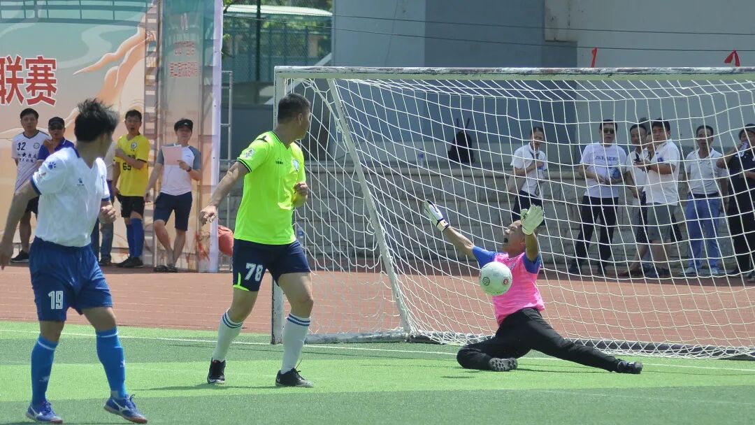 31分钟,化工队球员默契配合,66号谢汉光转身传球给46号马端波,马端波迅速反应将球传给8号张璞,张璞看准球门方向直脚斜脚背射门,球进了!化工队再获一分,比分变成2:0。赛场上的气氛愈发焦灼,皮球在双方队员脚下不断翻滚,化工队46号马端波在争夺皮球时,踢到了电气队77号聂抗的脚踝,被罚黄牌。 40分钟,电气队获得点球机会,电气队7号蔡杉点球进球,为电气队夺得一分,比分变成2:1。上半场结束。