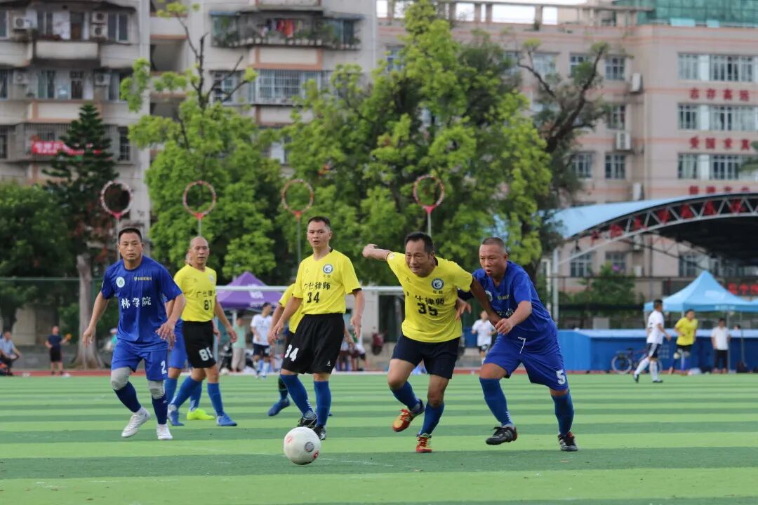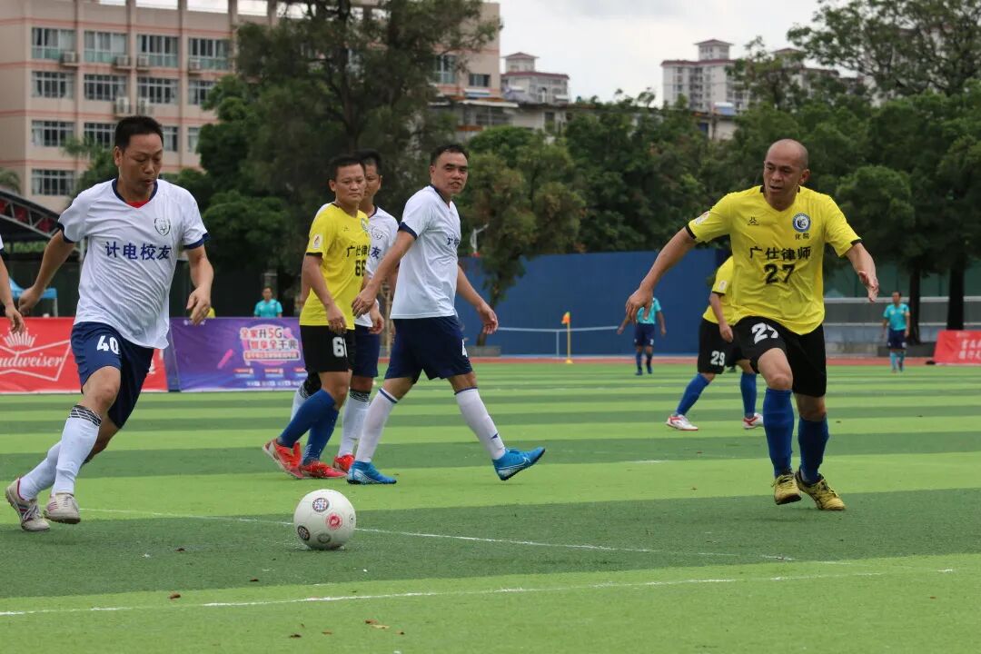 2021年8月15日下午三点半,35+组商院校友队与法学院校友队在广西大学西体展开了对决。