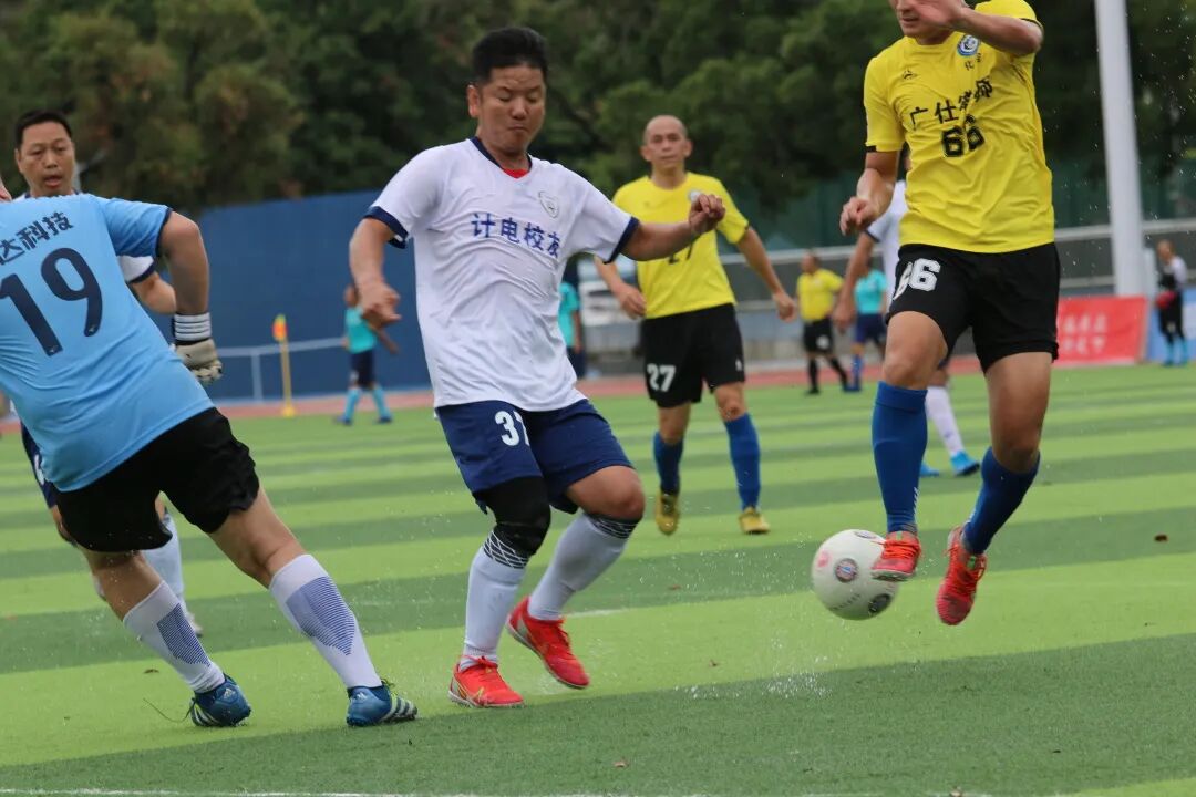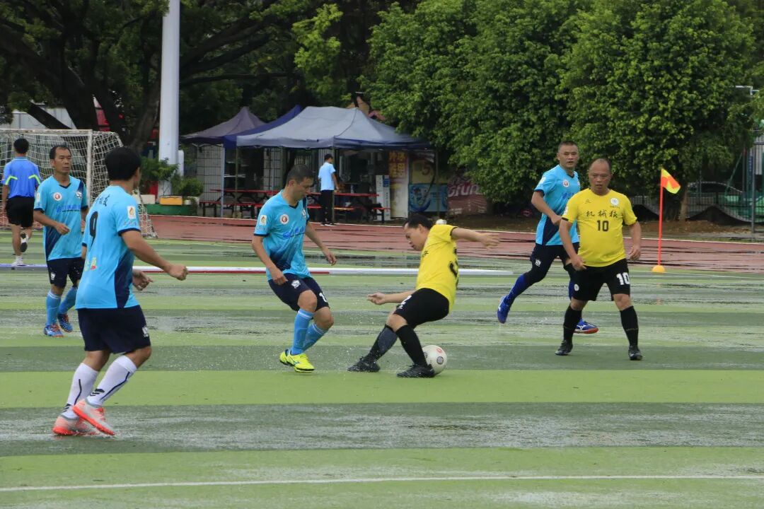 下半场刚开场几分钟,忽然下起大雨,但球员依旧保持状态,比赛在大雨中依旧激烈的进行着。第44、49、52分钟 机械队连进3球,把比分扩大到5:1,基本锁定胜局。第65分钟, 动科队19号赵俊在大雨中带球突破射门,球随着雨水滚进球门,扳回一分。