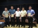 陪同李高南主任访柳的校友足球协会秘书长祝云向罗铭赠送校友足球协会纪念旗。