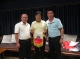 李高南主任给校友们赠送了《广西大学史话》一书,并与校友们共同在校旗下合影留念。