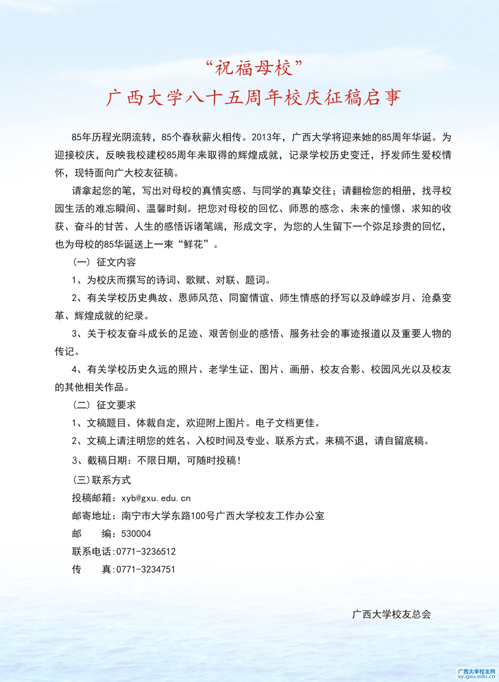 广西大学校友活动中心(原学生6栋)535室 广西大学电气工程学院一楼校园文化创意馆(联络站) |