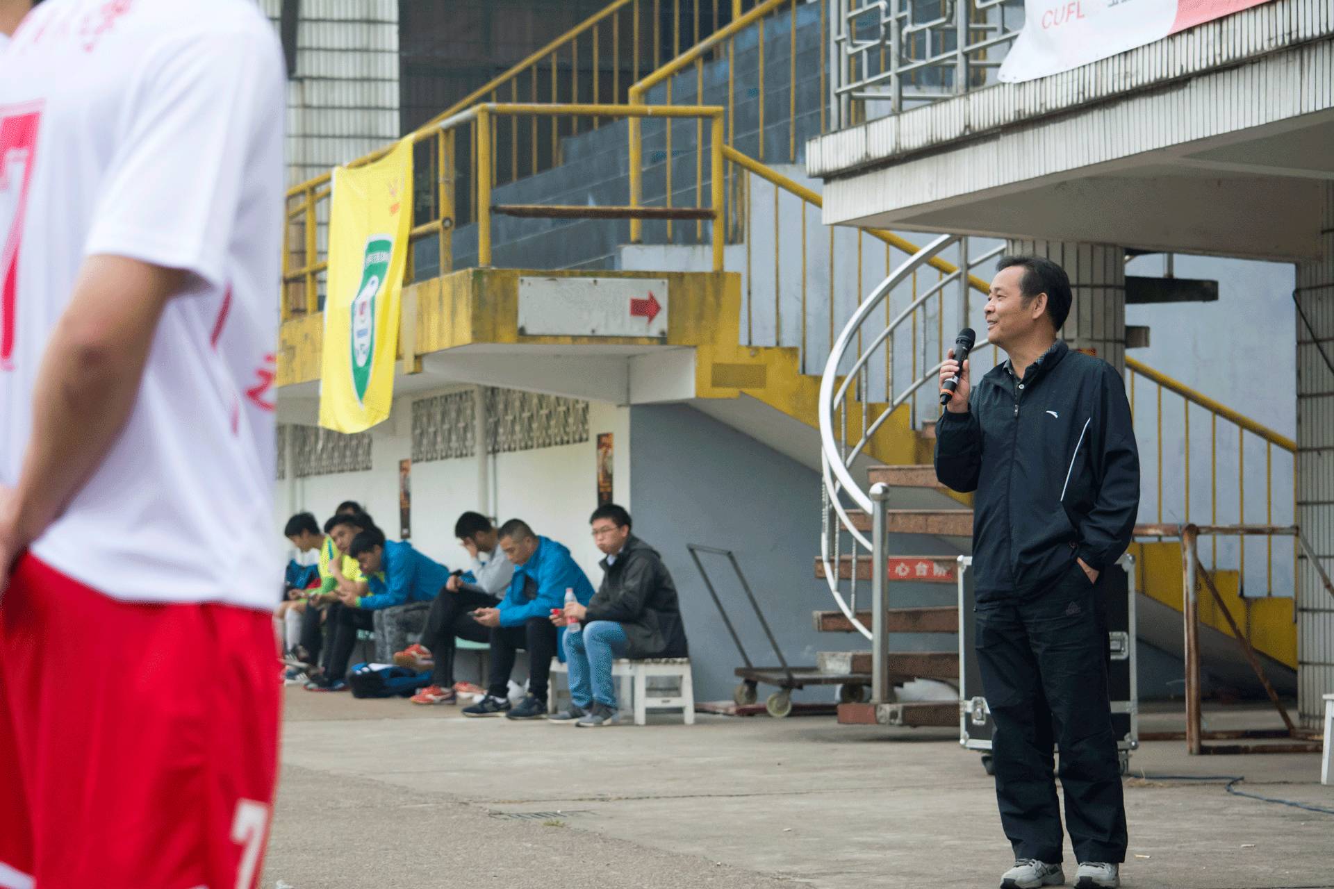 (曾国柱主席在开球仪式前讲述五菱公司悠久的足球文化氛围)