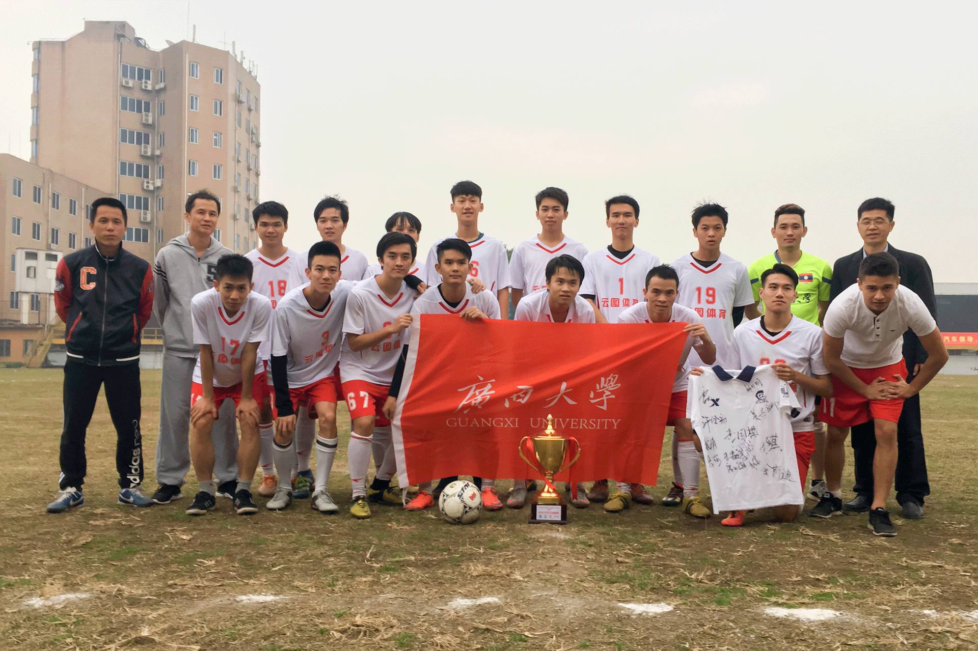 (获奖双方合影留念,广西大学代表队获得优秀大学生足球团队奖)