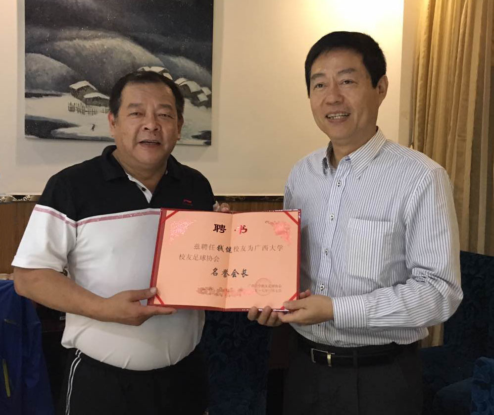 2017 年 1 月 7 日下午,广西大学校友足球协会 2016 年年会在广西大学胜利召开,广西大学副校长钱健受聘为协会名誉会长。