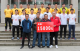 黄建平会长代表广西大学校友足球协会,将广西第二安装公司和文建农业有限公司捐赠的款项交给广西大学足球队