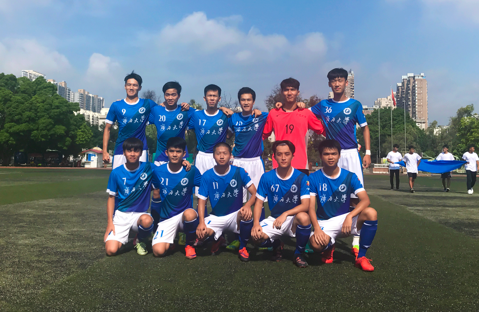 2017 年 6 月 24 日上午 9 时 30 分,2017 "学霸杯" 一带一路城市大学生足球联赛 “一路” 赛区半决赛第二回合在广西大学西校园足球场举行。广西大学足球队以 1 : 0 的比分在主场战胜了广西师范大学足球队,总比分 3 : 1 成功晋级 “一路” 赛区决赛。