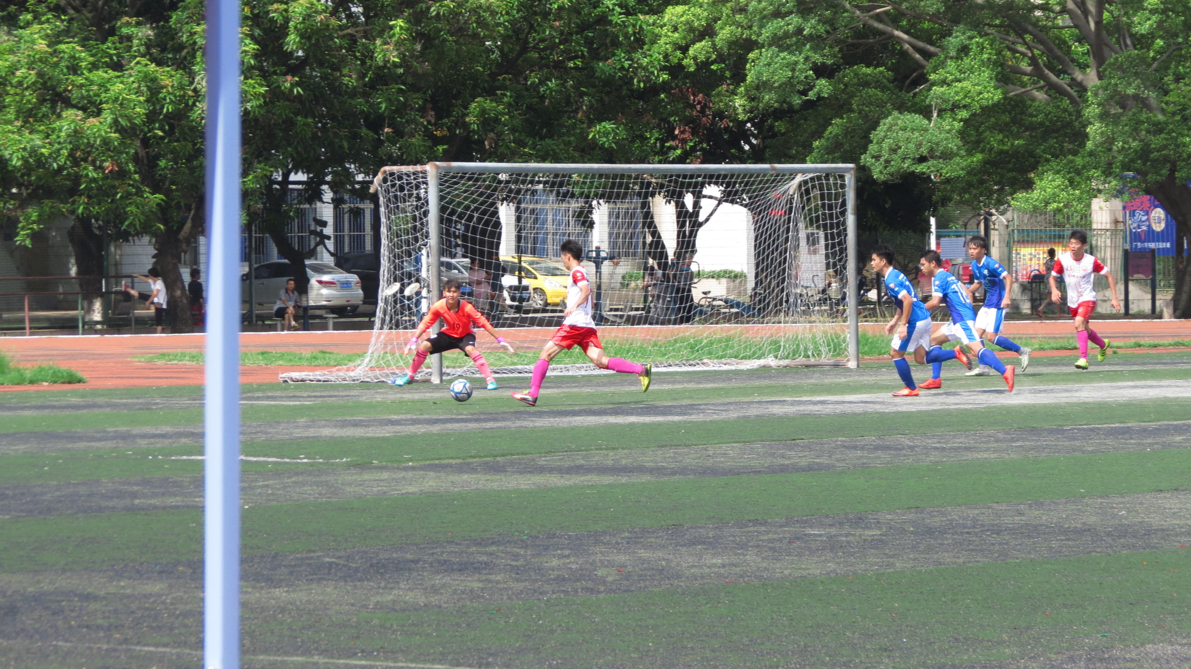 本场比赛刚开场,广西大学足球队就取得开门红,5 分钟时 9 号队长刘世晗获得单刀机会,推射中的。广西师范大学足球队为了追平比分,积极进攻,掌控球权,频频威胁到西大禁区。由于天气炎热,体能消耗十分严重,广西大学足球队被动防守,虽然屡屡有反击机会,但在关键一传的处理上总是差了一点。