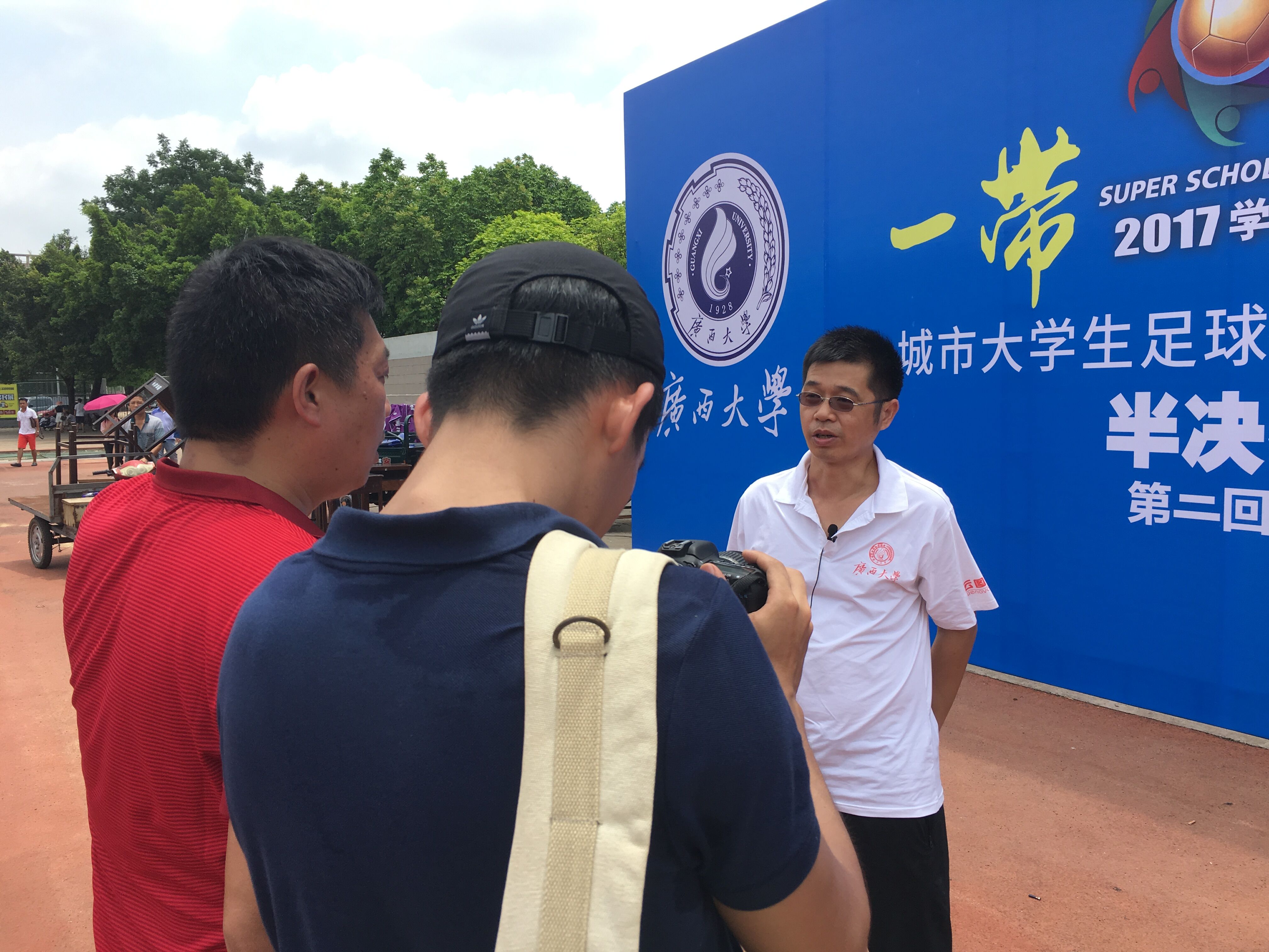 广西大学校友足球协会秘书长祝云接受了记者采访,他感谢双方队员为观众奉献了一场精彩的比赛,他告诉记者 “今天不少校友都赶回母校观看比赛,为年轻人加油鼓劲,相信小伙子们会在后面的比赛中取得好成绩。”