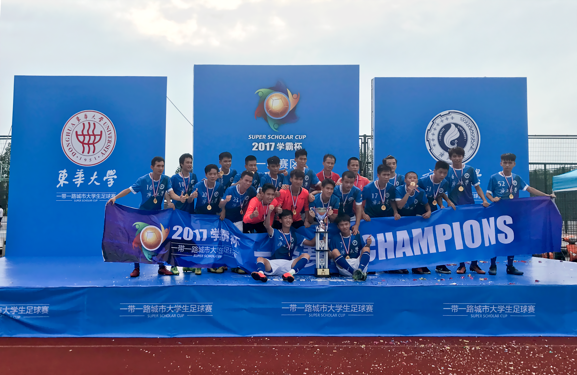 2017 年7月2日下午2时, 在上海松江大学城内,2017“学霸杯”一带一路城市大学生足球赛一路赛区的决赛在广西大学与东华大学之间打响。广西大学足球队凭借着出色的发挥,1 : 0战胜上海东华大学,夺取学霸杯一路赛区冠军。广西大学主教练黄文武荣获最佳教练,梁侯鹏荣获最佳射手。