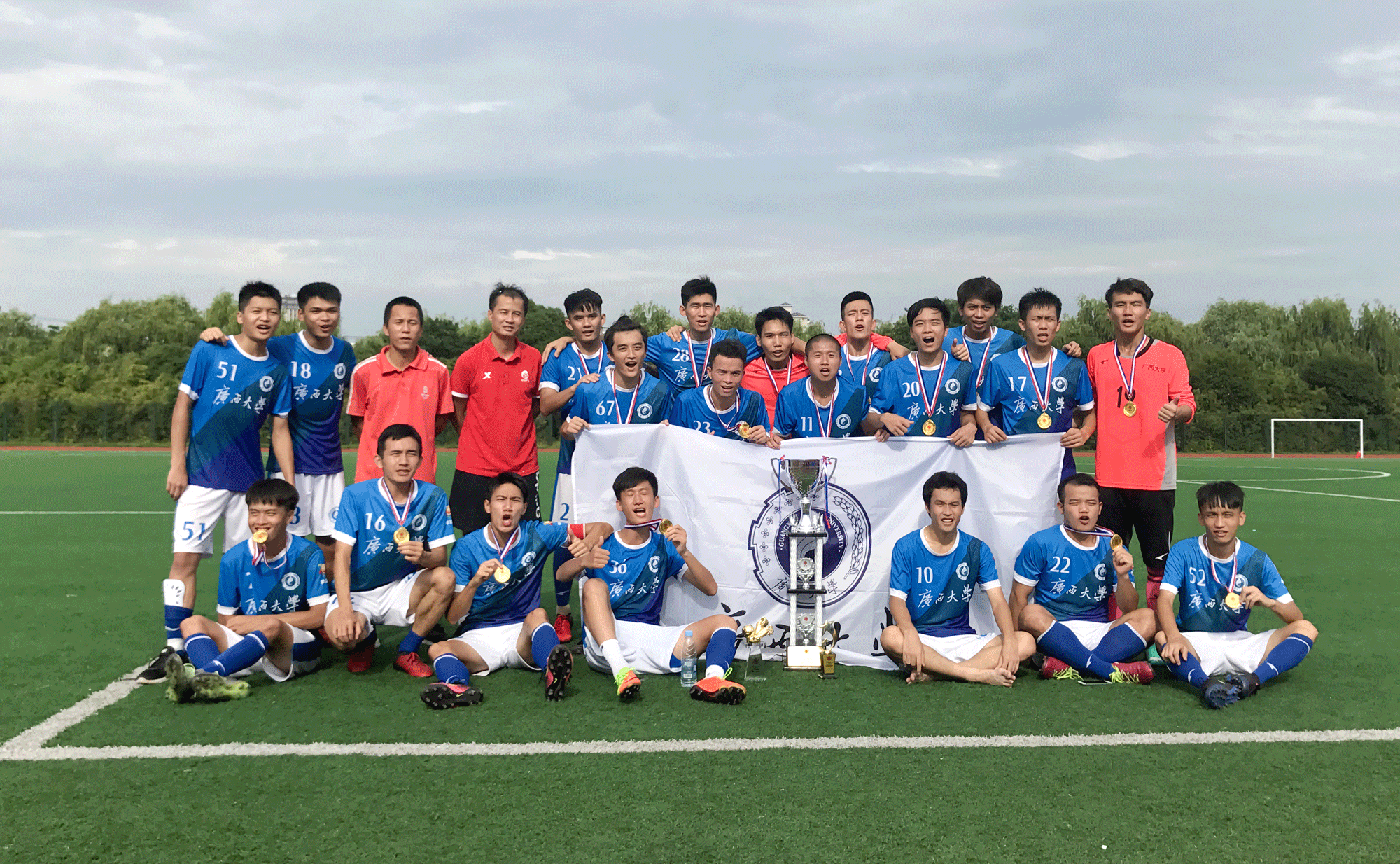 恭喜年轻的小将们通过自己的拼搏为西大赢得冠军,相信在教练组的指导下,广西大学足球队未来定能勇面对所有的困难及挑战,为广西大学带来更多的喜悦和荣誉。