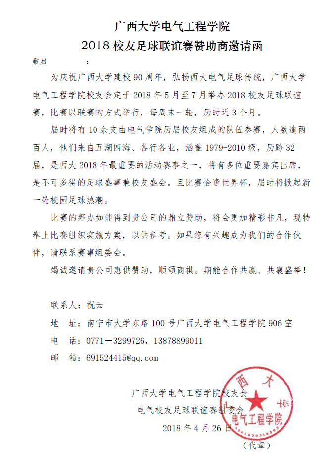 赞助商邀请函