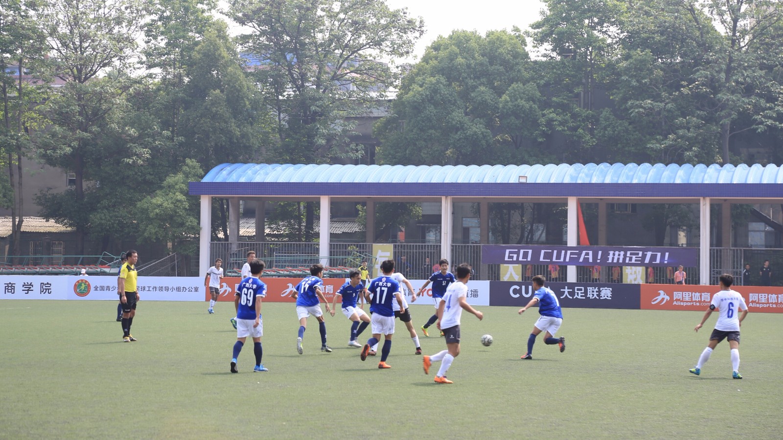 4月29日,我队面对湖南大学,开局后,我队持续保持高位压迫和边路传中的机会,创造出不少的得分机会,可以都未能把握住。上半场30分钟,我队队长9号刘世晗发出中场任意球,我队24号蔡骋在后点错失空门。41分钟,队长刘世晗在禁区前沿吊射,皮球将将高出横梁。在错失不错的机会后胜利天平开始倾斜,下半场53钟,对方抓住防守反击的机会,垫射破门。57分钟,对手利用角球的机会在我方禁区制造混战,捅射破门,我队2-0落后。此后通过换人调整,我队持续给对手高压,于80分钟利用角球机会,我队17号球员王鹏在禁区弧顶打出石破天惊的世界波,皮球直挂上角,我队扳回一局。最终我队一次次的进攻并没有能转化成进球,2-1分的比分一直保持到终场。